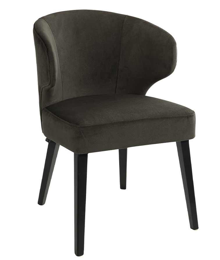 Saatavilla luonnonvaaleana pellavaverhoiluna harmailla puujaloilla tai tummanruskeana samettina mustilla puujaloilla, tuoli täydentää sisustusta lämpimällä ja elegantilla tavalla.