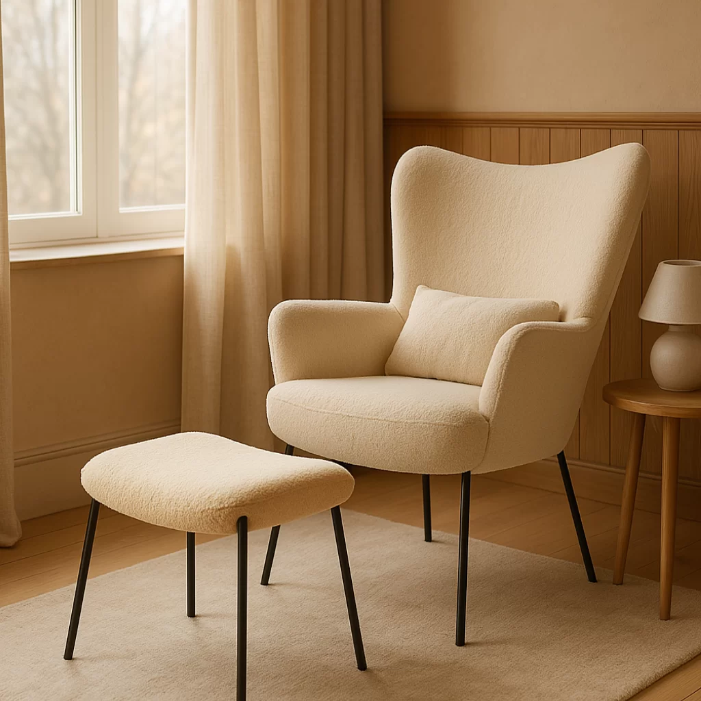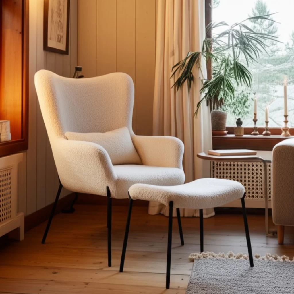 Lago-lepotuoli hurmaa pehmeällä istuinmukavuudellaan ja trendikkäällä ilmeellään. Korkeaselkäinen, kaareva muoto tukee täydellisesti kehoa ja tarjoaa rentouttavan istuma-asennon pitkän päivän päätteeksi. Pehmeä, lampaankarvaa muistuttava verhoilu tekee tuolista ylellisen ja kutsuvan, sopien täydellisesti sekä olohuoneen keskipisteeksi että makuuhuoneen rauhalliseen nurkkaukseen.