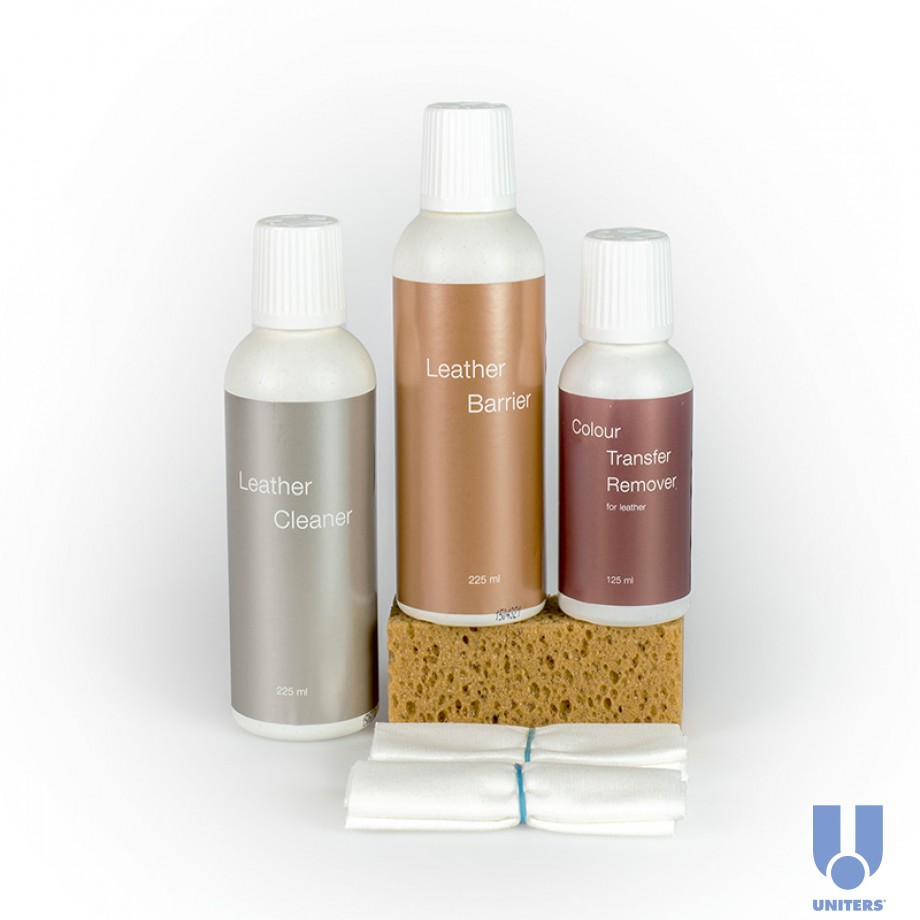 • Setti sisältää kaiken tarvittavan: Color Transfer Remover, Leather Cleaner, Leather Barrier, kaksi pehmeää pyyhettä ja sienen, riittäen kokonaisen nahkakaluston tai auton istuinten käsittelyyn.