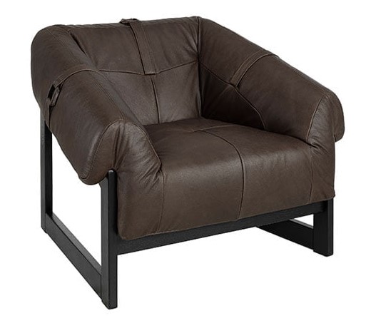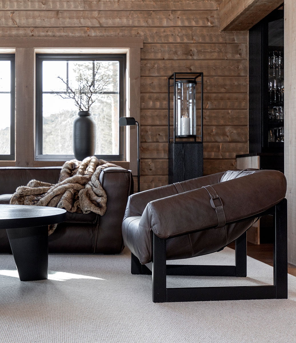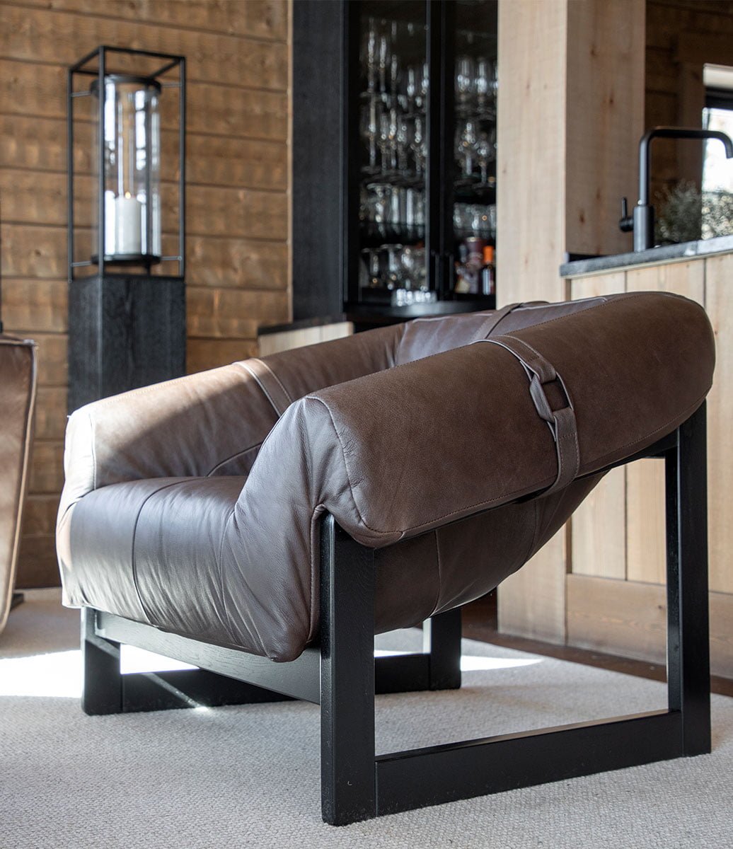 Lee-nojatuoli yhdistää laadukkaan ruskean semi aniline -nahkaverhoilun ja tyylikkäät mustat puujalat, tuoden sisustukseen modernia eleganssia ja klassista kotikutsuvuutta.