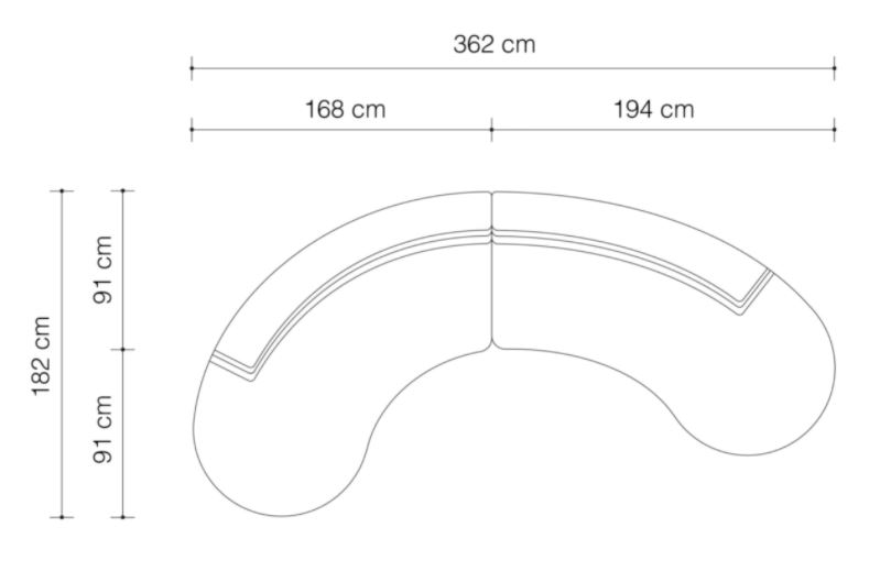 Leveys 362 cm, syvyys 182 cm ja korkeus 71 cm tarjoavat runsaasti tilaa rentoutumiseen, seurusteluun ja koko perheen yhteisiin hetkiin. Suuri ja kutsuva muotoilu tekee tästä sohvasta täydellisen valinnan avariin tiloihin, joissa mukavuus ja näyttävyys kulkevat käsi kädessä.