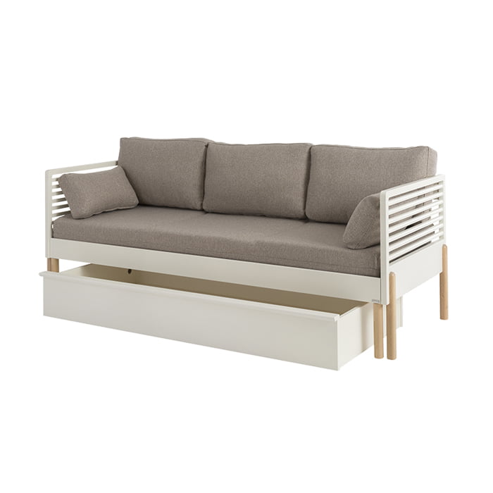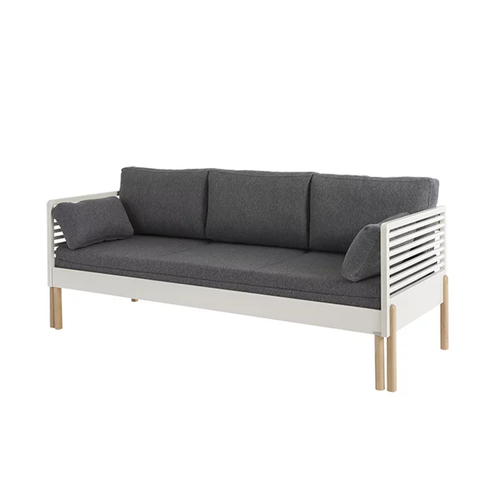 Käytännöllinen puusohva muuntuu käteväksi vuoteeksi vieraille ja voit valita koon 2 eri vaihtoehdosta. Vuodesohvaan on valittavana 2 eri taittopatjasarja vaihtoehtoa jossa on kolme isoa pehmeää selkänojatyynyä sekä kaksi pienempää käsinojatyynyä. Toinen malli on Lido taittopatjasarja jossa värejä on enemmän mutta se valmistetaan tilauksesta kun taas Levon taittopatjasarja on varastotuote. Patjan saa aukaistua ja levitettyä vuodepatjaksi. Vaahtomuovinen patja on verhoiltu kulutusta kestävällä kankaalla, joka takaa pitkäikäisyyden.