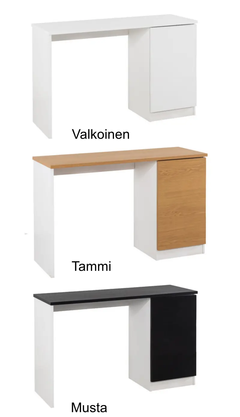 Pöytä on valmistettu maalatusta MDF-levystä ja tukevasta HDF-taustasta, mikä takaa erinomaisen kestävyyden ja pitkäikäisyyden. Lilja Kirjoituspöytä 22 toimitetaan osina, mutta kaappiosa on valmiiksi koottu – sinun tarvitsee vain asentaa kansi ja vetimet. Tilauksen yhteydessä voit valita, tuleeko kaappi oikealle vai vasemmalle puolelle, jotta pöytä sopii täydellisesti tilaasi.