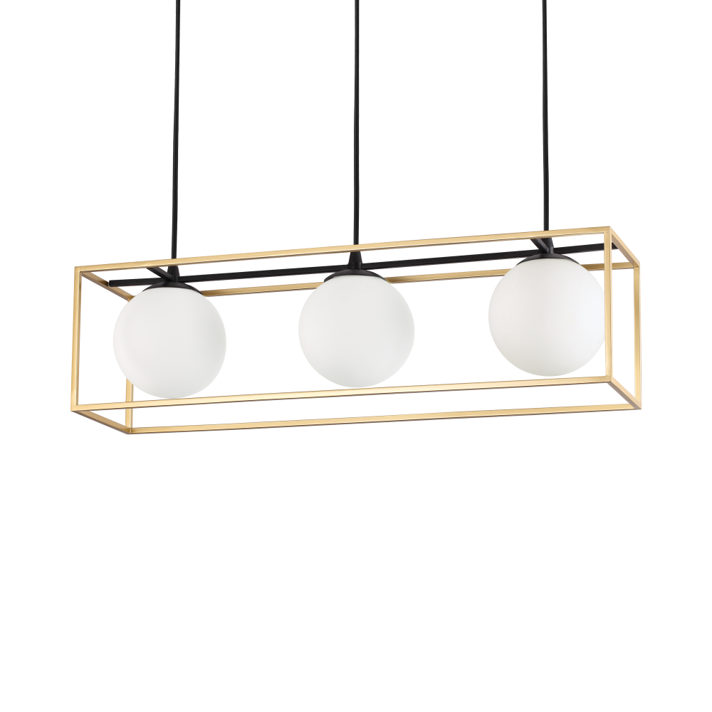 Tyylikäs Lingotto SP3 metallinen riippuvalaisin yhdistää messingin ja mustan rungon harmonisesti valkoisiin lasikupuihin, luoden modernin mutta lämpimän kokonaisuuden. Selkeälinjainen design sopii erinomaisesti sekä moderniin että klassiseen sisustukseen ja tuo tilaan viimeisteltyä ilmettä.