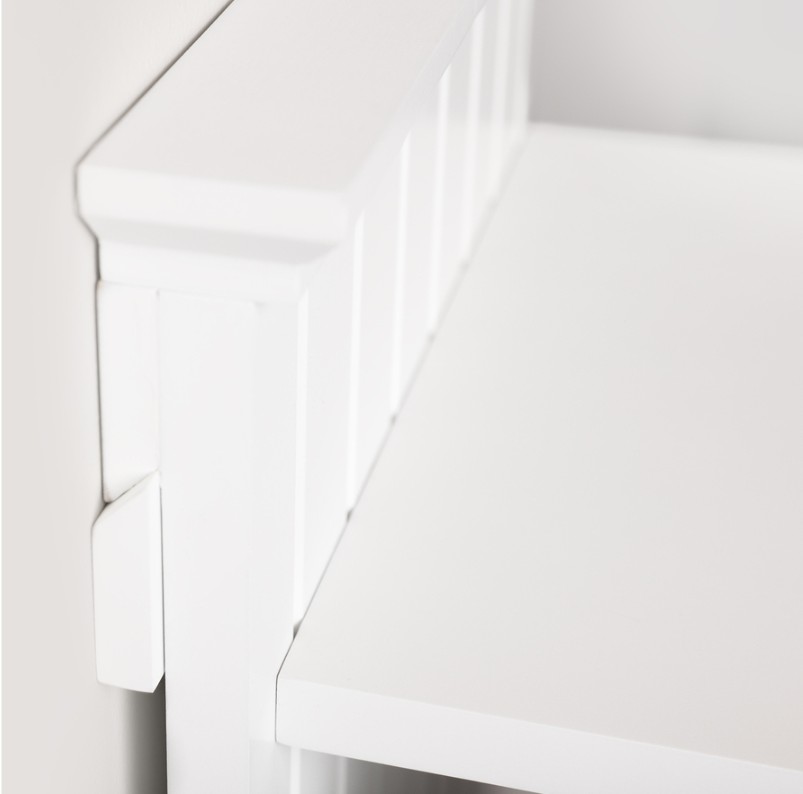 Linus on valkoinen seinään kiinnitettävä yöpöytä, jossa on hylly, laatikko ja tyylikäs taustaseinä. Käsintehty viimeistely antaa sille antiikkisen ja uniikin ilmeen, jossa pienet epätäydellisyydet ovat osa charmia. Se on käytännöllinen ja kaunis lisä makuuhuoneen sisustukseen.