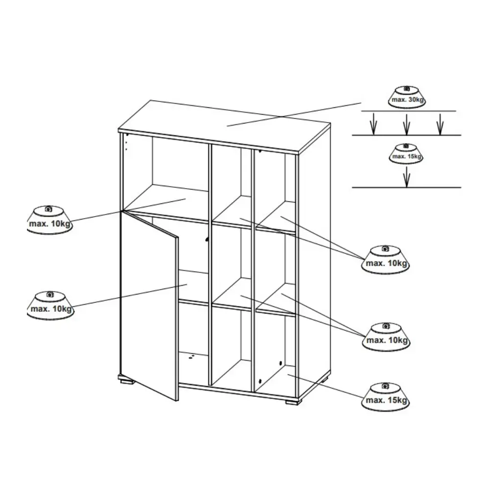 Push to open -mekanismi ovissa tekee käytöstä sujuvaa ja modernia, ja mahdollisuus koota hylly molemminkätisenä tarjoaa joustavuutta sijoitteluun eri tiloissa. Ratkaisu sopii niin pieniin kuin suuriin huoneisiin.