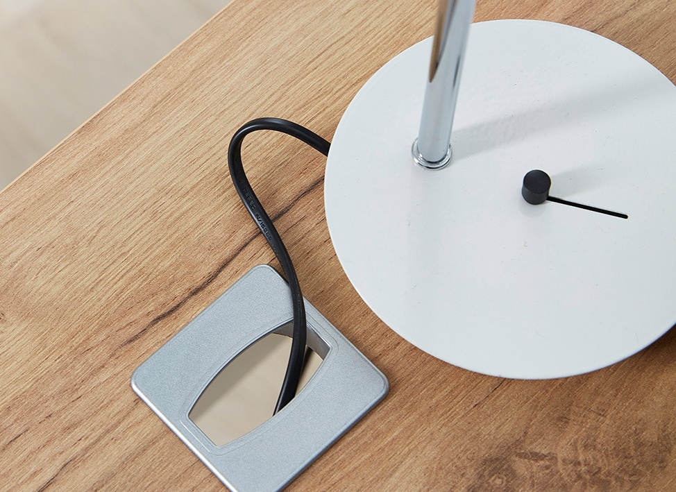 Pöydän kannessa olevat johdonhallintapaikat pitävät työpisteen siistinä ja organisoituna. Ne helpottavat johtojen hallintaa ja tekevät päivittäisestä työskentelystä sujuvampaa, mikä lisää ergonomiaa ja työskentelymukavuutta.