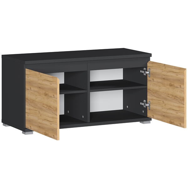 Kahden oven taakse sijoitetut kaksi korkeussäädettävää hyllyä tarjoavat muokattavaa säilytystilaa kengille ja pienille tarvikkeille. Penkin päälle jää runsaasti tilaa istumiselle, mikä helpottaa pukeutumista ja lisää käyttömukavuutta.
