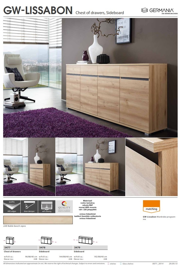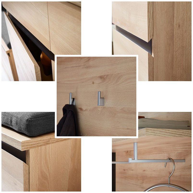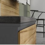 Kalustelevystä valmistettu runko, ABS-reunat, ovien hidastimet ja laatikoiden itsesulkeutuvat kiskot varmistavat pitkäikäisyyden ja miellyttävän käyttökokemuksen. Kaikki yksityiskohdat on suunniteltu huolellisesti tuomaan arkeen helppoutta ja laatua.