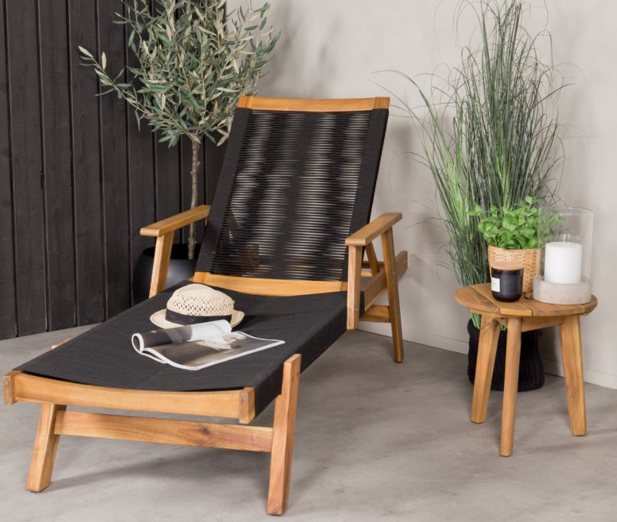 Runko on valmistettu ruskeasta akaasiapuusta sekä mustasta polyesteriköydestä. Sisusta uusi suosikkipaikkasi ulkona ja nauti aurinkoisista kesäpäivistä!