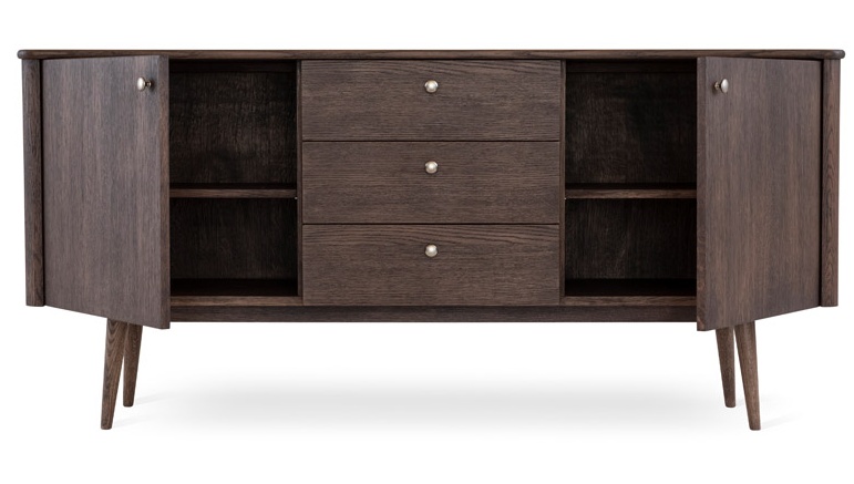 Senkissä on kaksi ovea, joiden takana kummankin oven yhteydessä on puinen korkeussäädettävä hylly, sekä kolme itsestään sulkeutuvaa laatikkoa pientavaroiden siistiin säilytykseen. Selkeä jaottelu tekee senkistä käytännöllisen ratkaisun olohuoneeseen, ruokailutilaan tai eteiseen.