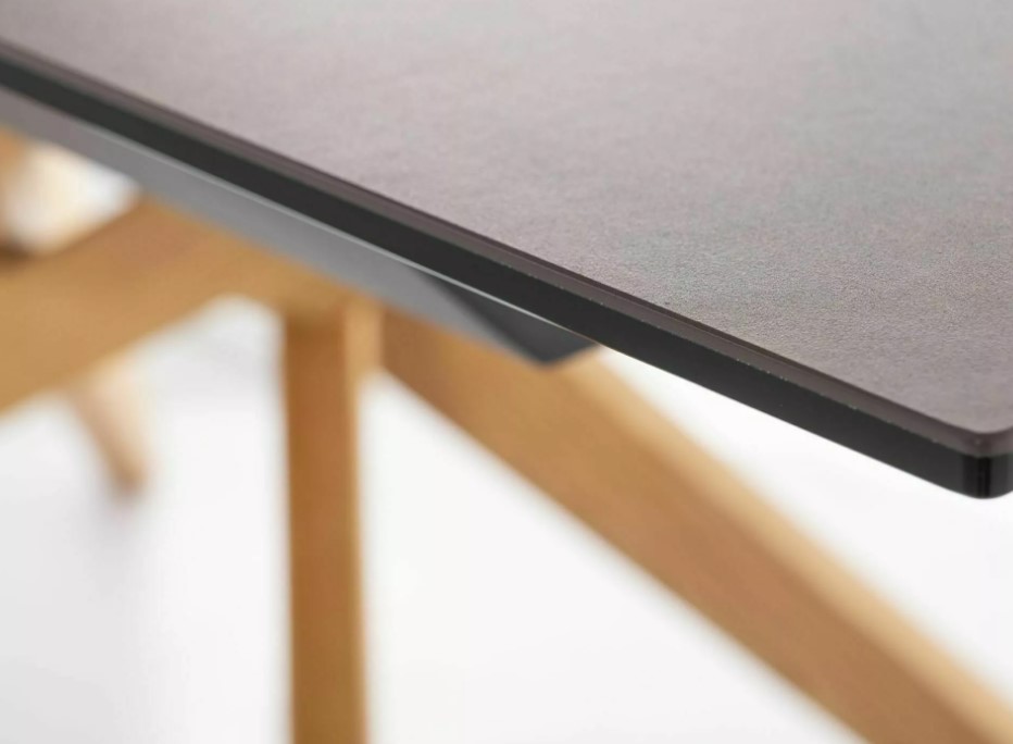 Karkaistu lasi, keramiikka ja tammi muodostavat vankan ja pitkäikäisen rakenteen, joka kestää käyttöä vuodesta toiseen. Mattaruskean ja tammen sävyinen värimaailma tuo ruokailutilaan luonnollista lämpöä ja kutsuvan tunnelman.