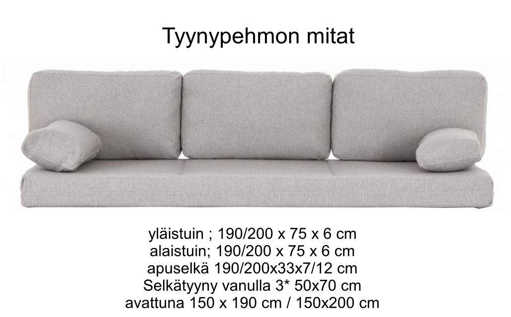 LP304 Taittopatjasarja TyynyPehmo on valmistettu laadukkaista vaahtomuoveista: yläistuin EP-35, alaistuin HR-35 ja apuselkä E-25, jotka takaavat pitkäikäisyyden ja hyvän käyttötuntuman. Verhoiluvaihtoehtoina ovat Kabal- ja Lido-kankaat, ja lisätilauksesta voit täydentää kokonaisuutta käsinojatyynyillä tai sijauspatjalla. Saatavana myös muilla kankailla asiakaspalvelun kautta.