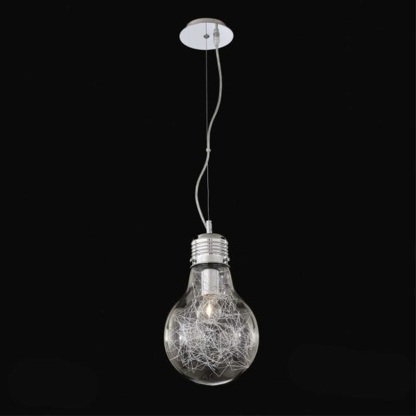 - Moderni lasivalaisin kromi rungolla. Valaisimen sisällä metallilankaa. Valaisimen korkeutta voi säätää. Desing Italia. Lisätarvikkeista tilattavissa valaisimeen sopivan polttimen. Toimitus osissa