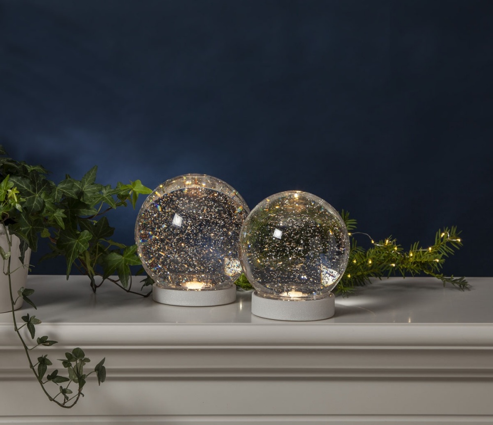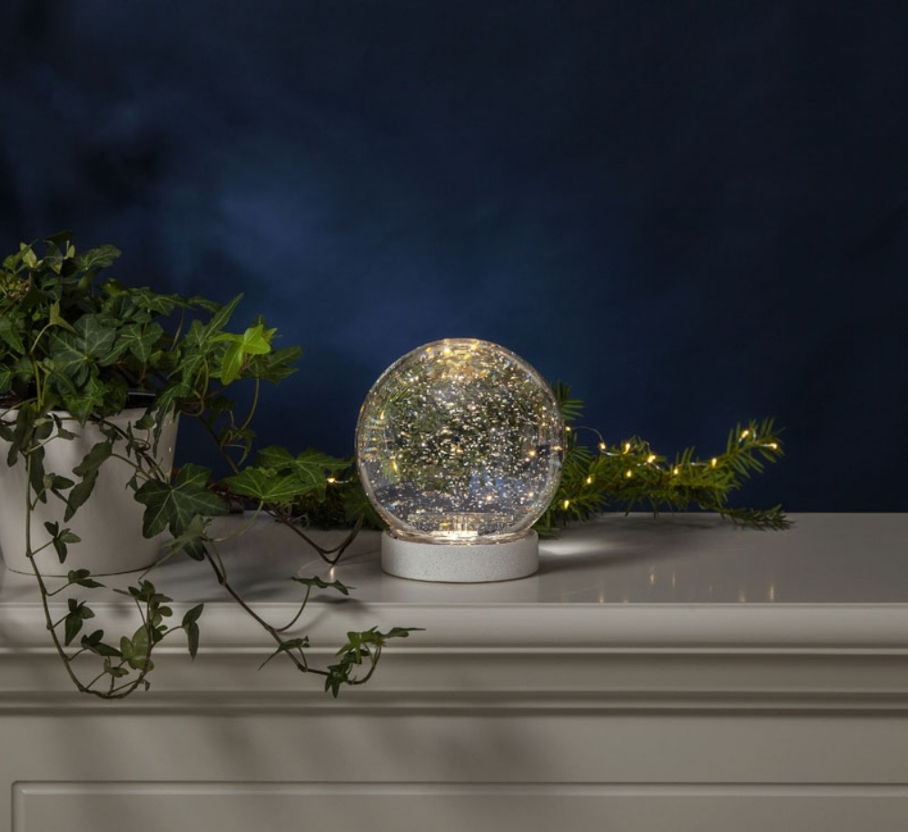 Hileet liikkuvat koristeen sisällä lumisateen tavoin, kun virta on päällä. Koristeessa on toistuva ajastin, joka on 6h päällä ja 18h pois päältä ja on tarkoitettu sisäkäyttöön.