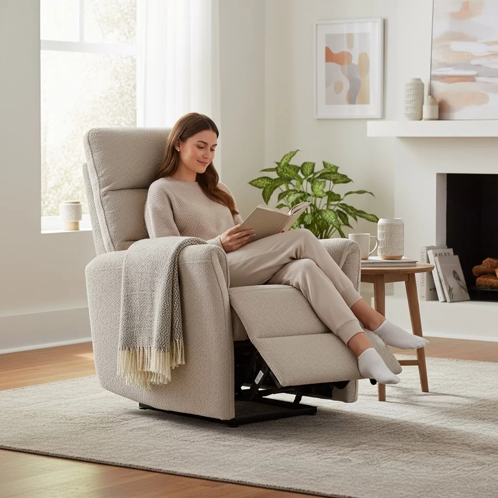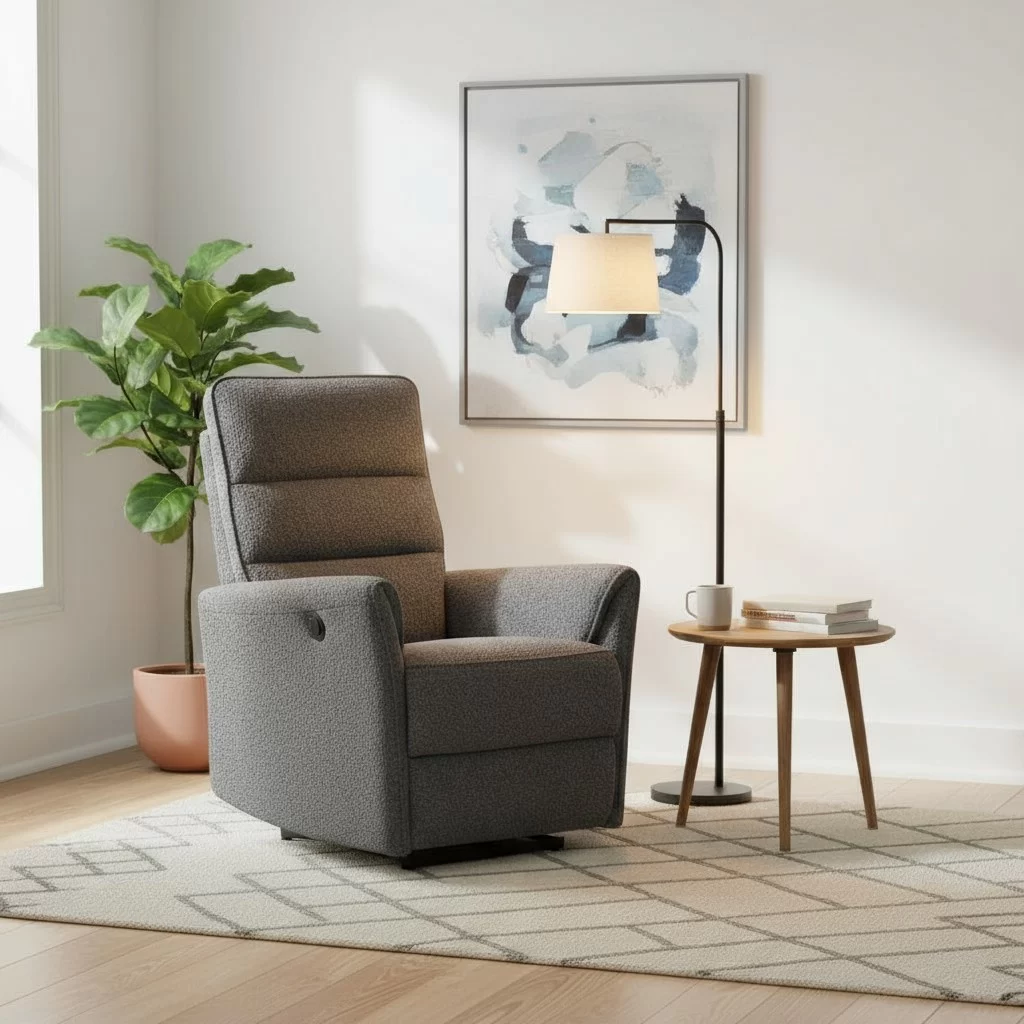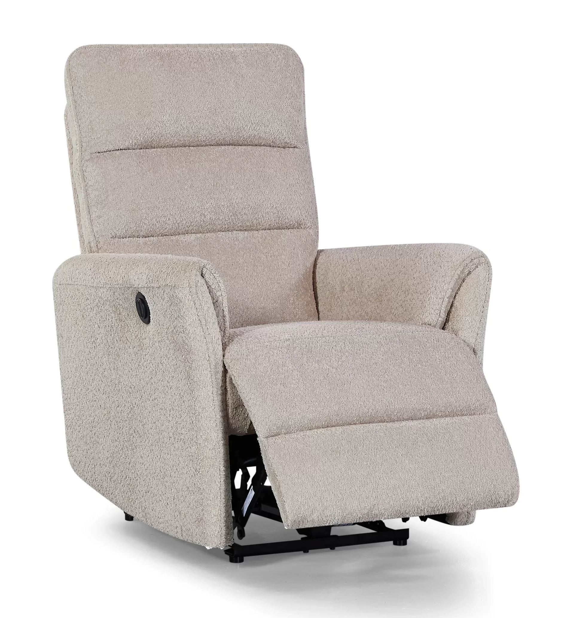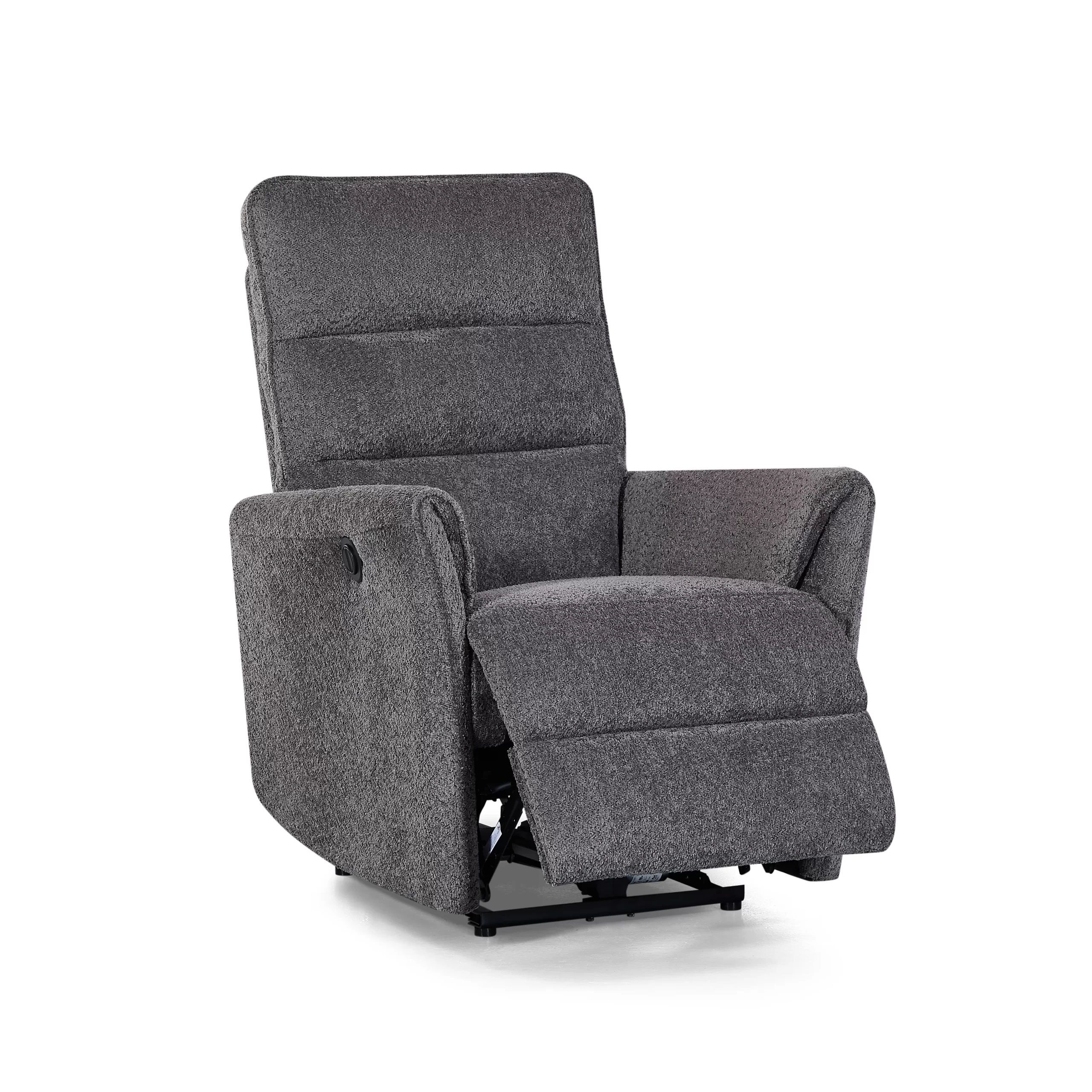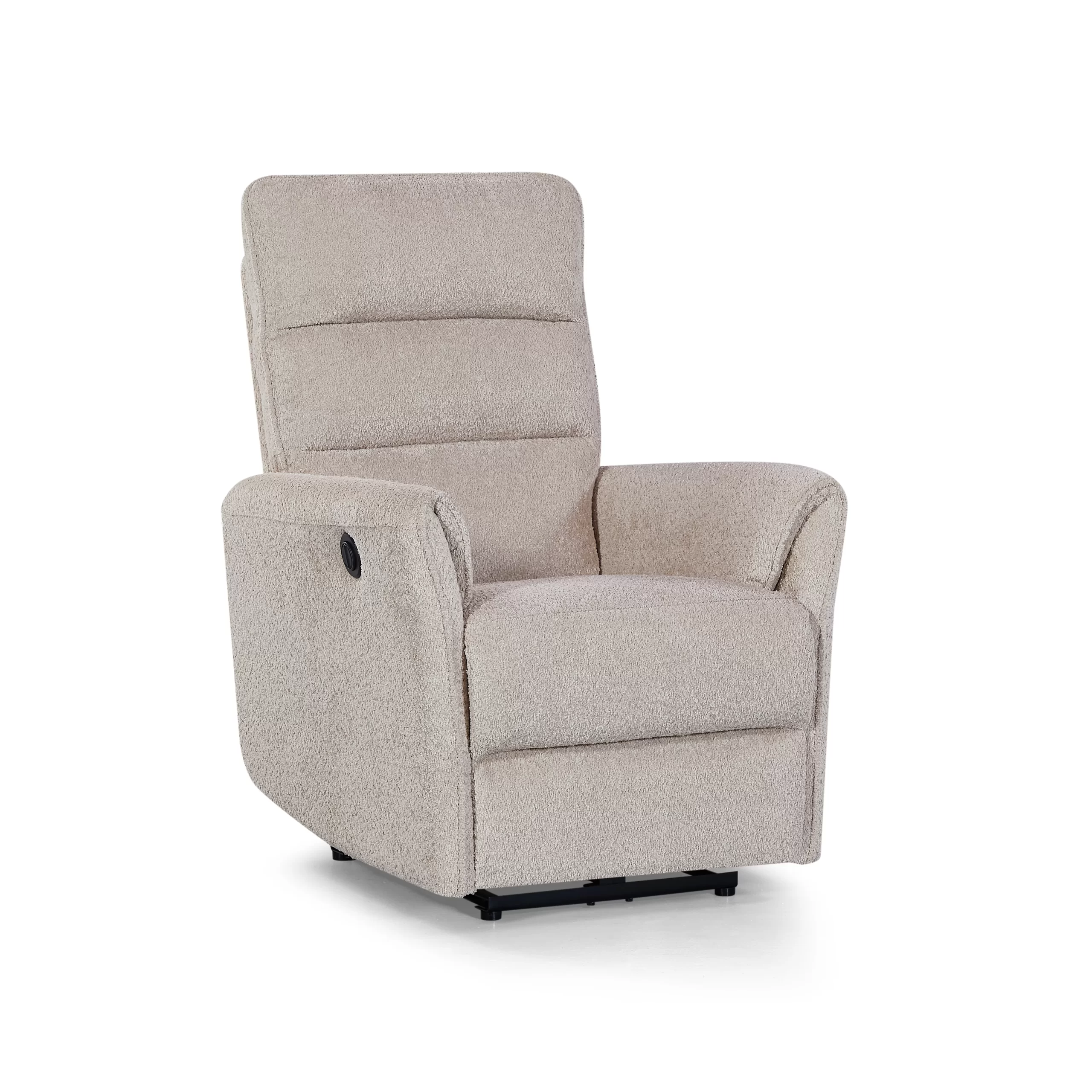 Sähköinen recliner-mekanismi kallistaa selkänojan ja nostaa jalkatuen napin painalluksella, tarjoten pehmeän ja sulavan siirtymän lepoasentoon. Ergonominen muotoilu tukee selkää ja mahdollistaa pitkätkin lepohetket täydellisessä asennossa.