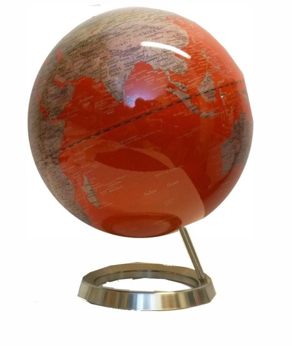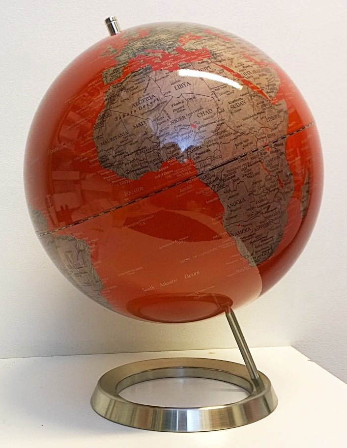 • Punaisen värinen maapallo metalli  jalustalle. Maapallo pyörii.