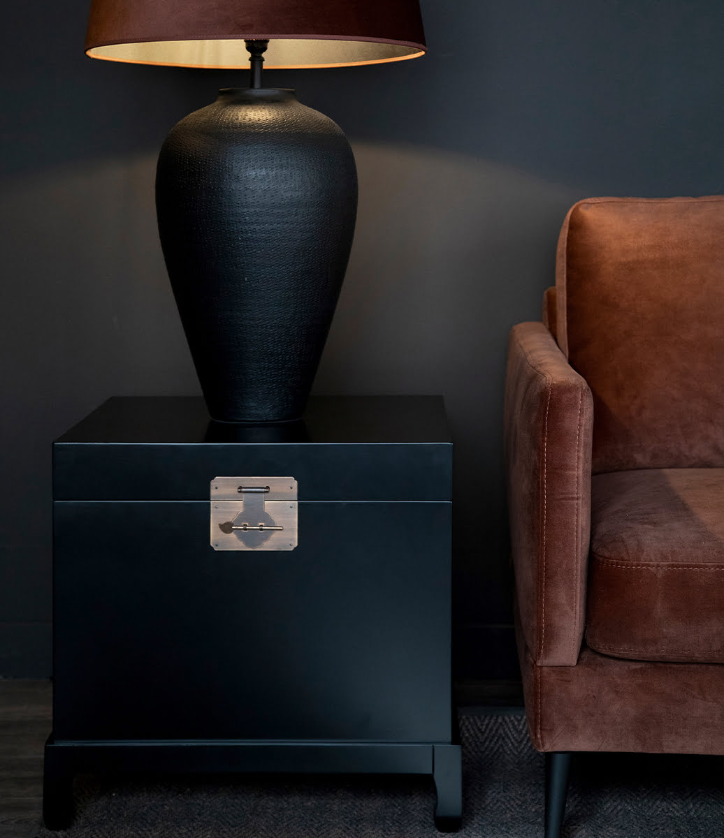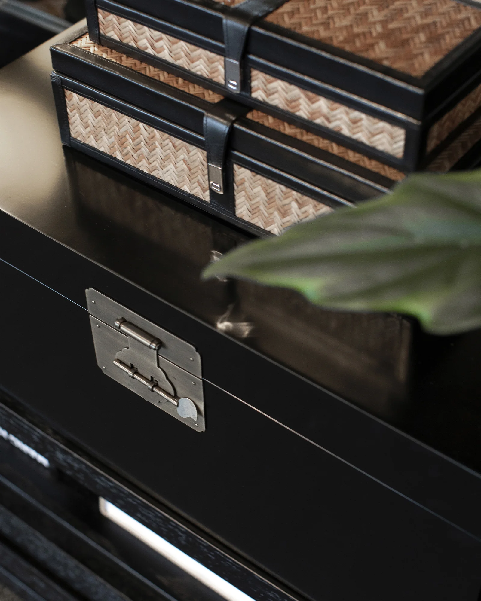 Macao-säilytysarkku tuo kotiin hienostunutta itämaista tunnelmaa, jota korostavat antiikkimessingiset helaosat ja selkeät linjat, ja se sulautuu kauniisti myös moderniin sisustukseen.