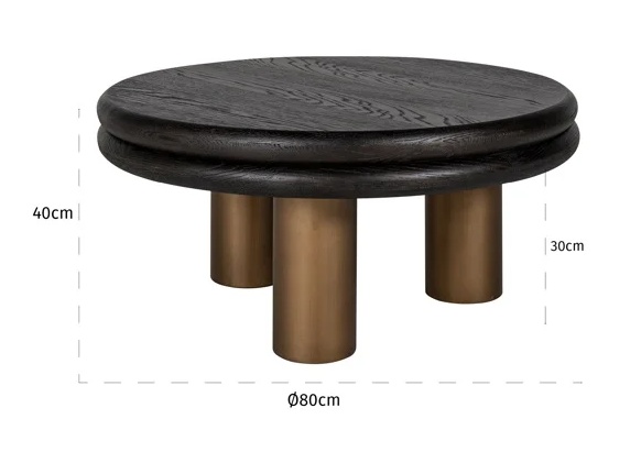 • Macaron-sohvapöytä yhdistää rustiikkimustan tammen ja messingin sävyiset metallijalat, luoden elegantin ja ylellisen ilmeen.