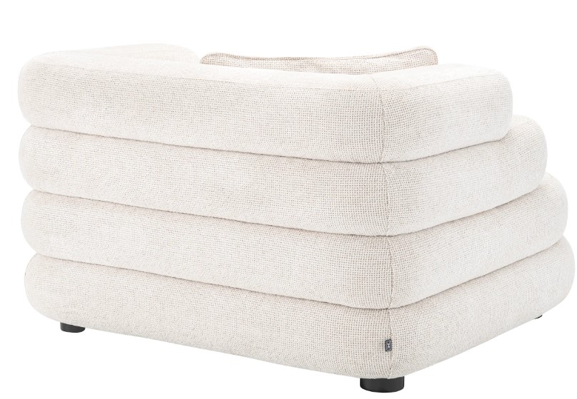 Polyuretaanivaahto ja metalliset siksak-jouset takaavat erinomaisen istuinmukavuuden, joka kutsuu rentoutumaan päivästä toiseen. Luonnonvalkoinen verhoilu yhdistettynä mustiin jalkoihin luo kestävän, raikkaan ja tyylikkään kokonaisuuden, joka säilyttää laadukkaan ilmeensä pitkään.