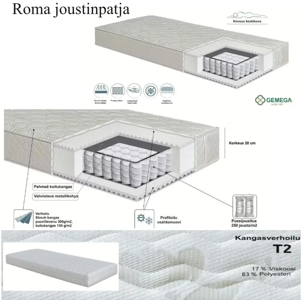 Toimitukseen sisältyy sälepohja, jotka varmistavat tasaisen ja tukevan pohjan. Sängyn päädyn tyynynkorkeutta voidaan säätää kätevästi, jotta saat juuri itsellesi sopivan asennon lukiessa kirjaa tai katsoessa televisiota