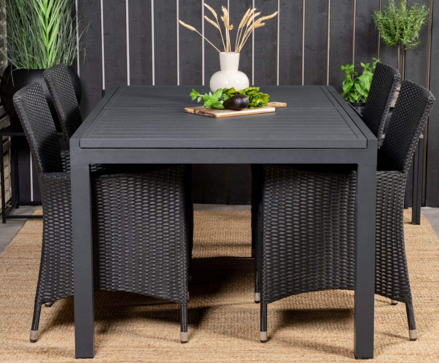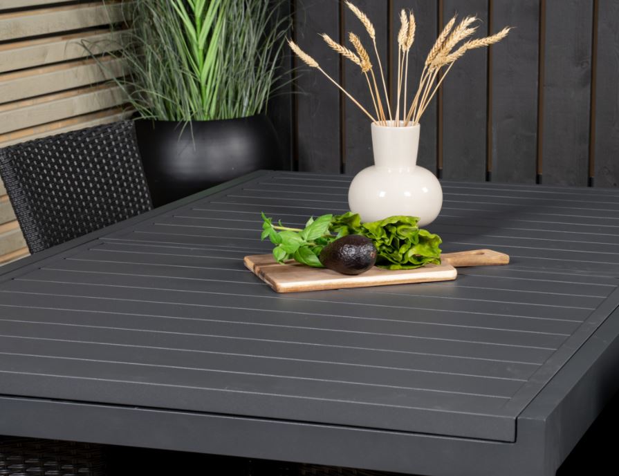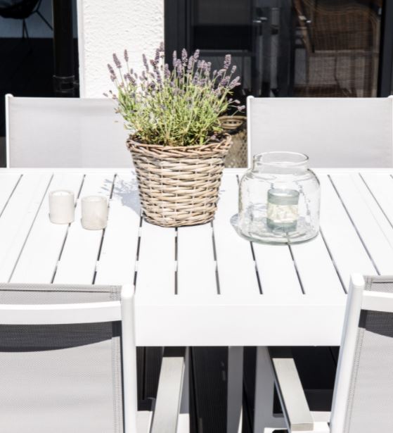 on pohjoismaiseen sisustukseen soveltuva. Pöytä on valmistettu alumiinista ja sitä on saatavana kahdessa eri värissä. Pöytä on kätevä niin pienempiin illallisiin perheen kanssa kuin isompiin kesäillan viettoihin ystävien kera.