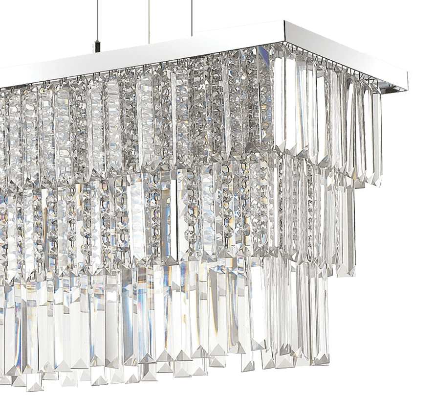 Martinez SP8 kristalliriippuvalaisin on näyttävä ja elegantti valaisin, joka tuo tilaan hotellitason ylellisyyttä. Pitkänomainen muoto ja runsaasti säihkyvät kristallielementit tekevät siitä täydellisen valinnan ruokapöydän, saarekkeen tai edustavan oleskelutilan ylle.