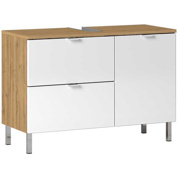 Yksi tilava vetolaatikko ja sen yläpuolella sijaitseva kaappi tarjoavat reilusti säilytystilaa arjen tarvikkeille. Korkeussäädettävä hylly mahdollistaa sisätilojen muokkaamisen omien tarpeidesi mukaan, pitäen kylpyhuoneen siistinä ja järjestelmällisenä.