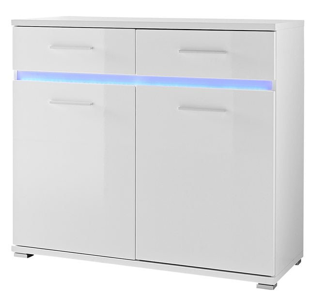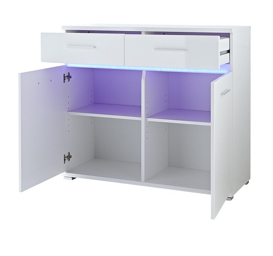 P Tyylikäs Melbourne sarjan korkeakiiltoinen kaappi. Kaapissa kaksi ovea joiden takana 1 korkeussäädettävä hylly ja lisäksi ovien päällä kaksi laatikkoa joissa metallikiskot. Materiaali kalustelevyä (mdf), etupaneelit korkeakiiltoista mdf levyä. Kaapissa tukevat ABS kanttaukset. Vetimet metallia. Toimitukseen sisältyy kaappiin sijoitettavat led valolistat. Toimitus osissa. /P