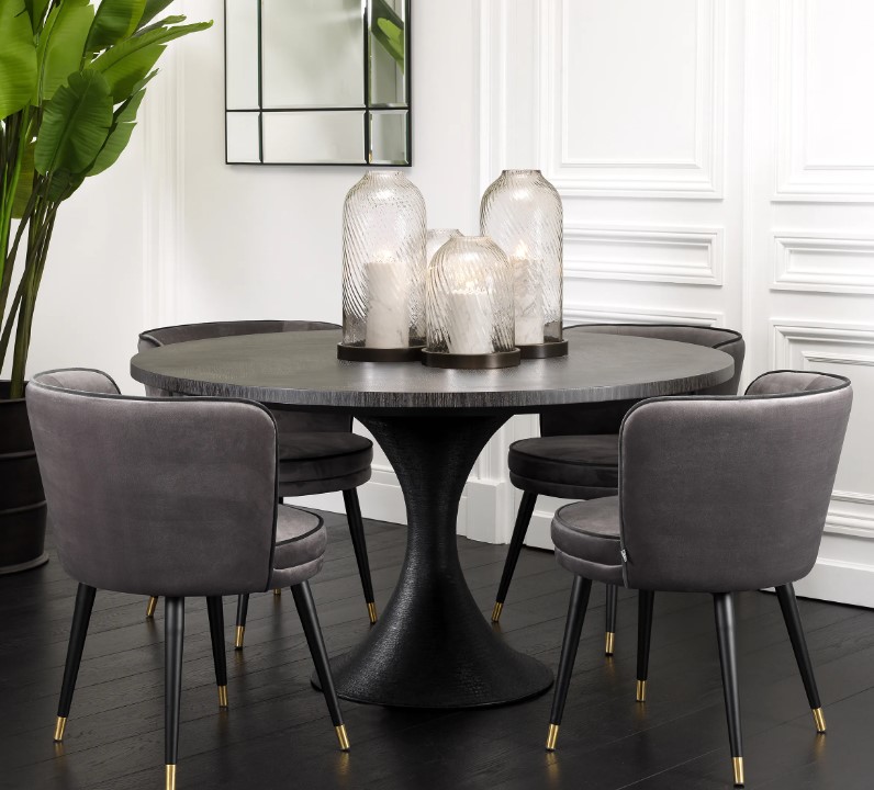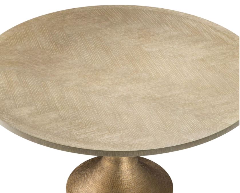 Melchior-pöytä on saatavana hiilenmustana pronssiviimeistetyllä jalalla tai vaalean tammen sävyssä harjatulla messinkijalalla, mikä mahdollistaa täydellisen vaihtoehdon löytymisen eri sisustustyyleihin. Tyylikkäät sävyvaihtoehdot tekevät pöydästä helposti yhdisteltävän sekä moderneihin että klassisiin kokonaisuuksiin.