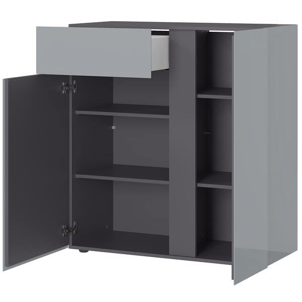 Kahden oven taakse kätkeytyvä kaappi ja sen vieressä oleva lipasto tarjoavat runsaasti tilaa niin asiakirjoille, tarvikkeille kuin pienille esineille. Säädettävät hyllyt mahdollistavat tilan muokkaamisen juuri omia tarpeitasi vastaavaksi, ja ABS-reunanauhat sekä ovien vaimennus tuovat arkeen lisää mukavuutta.