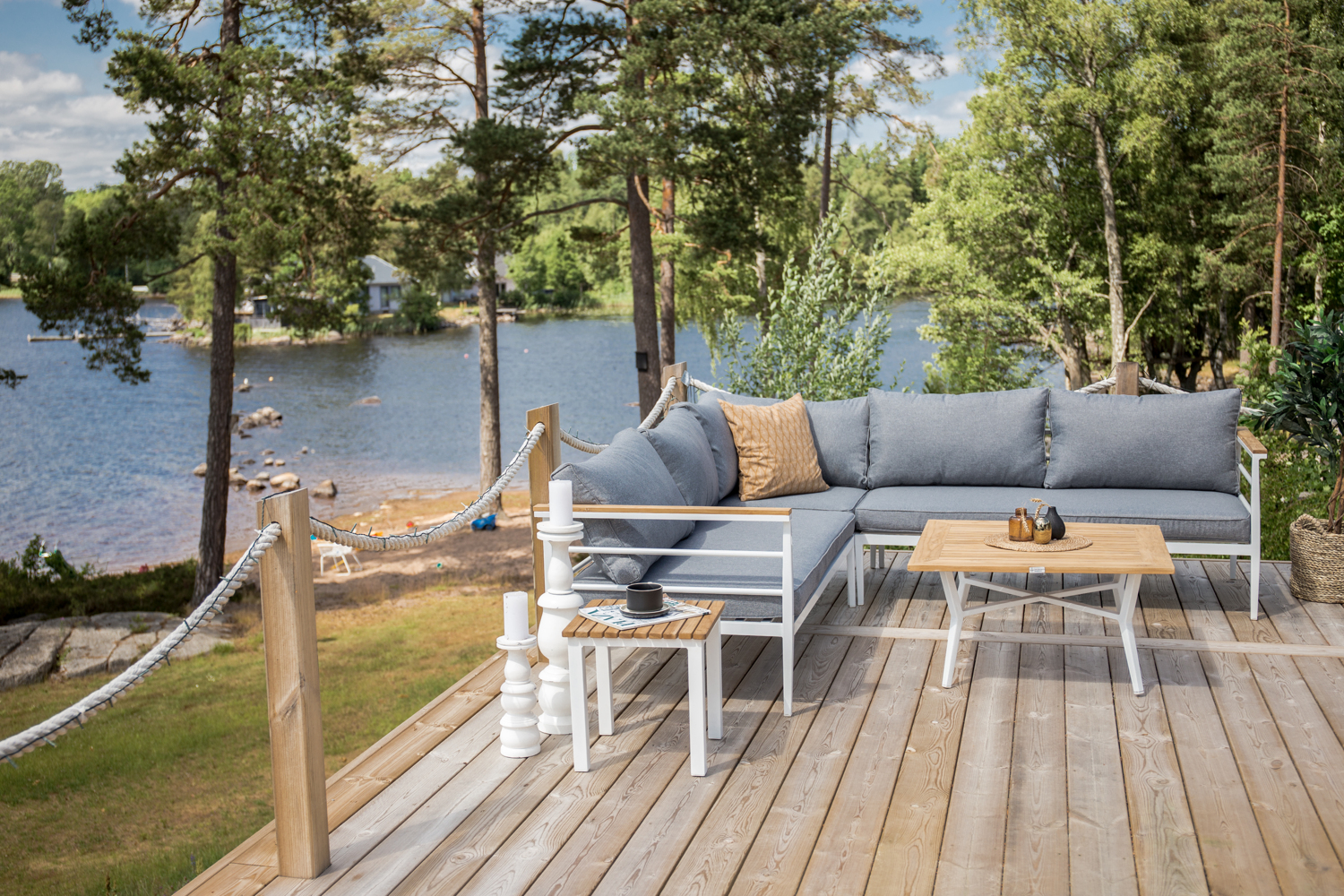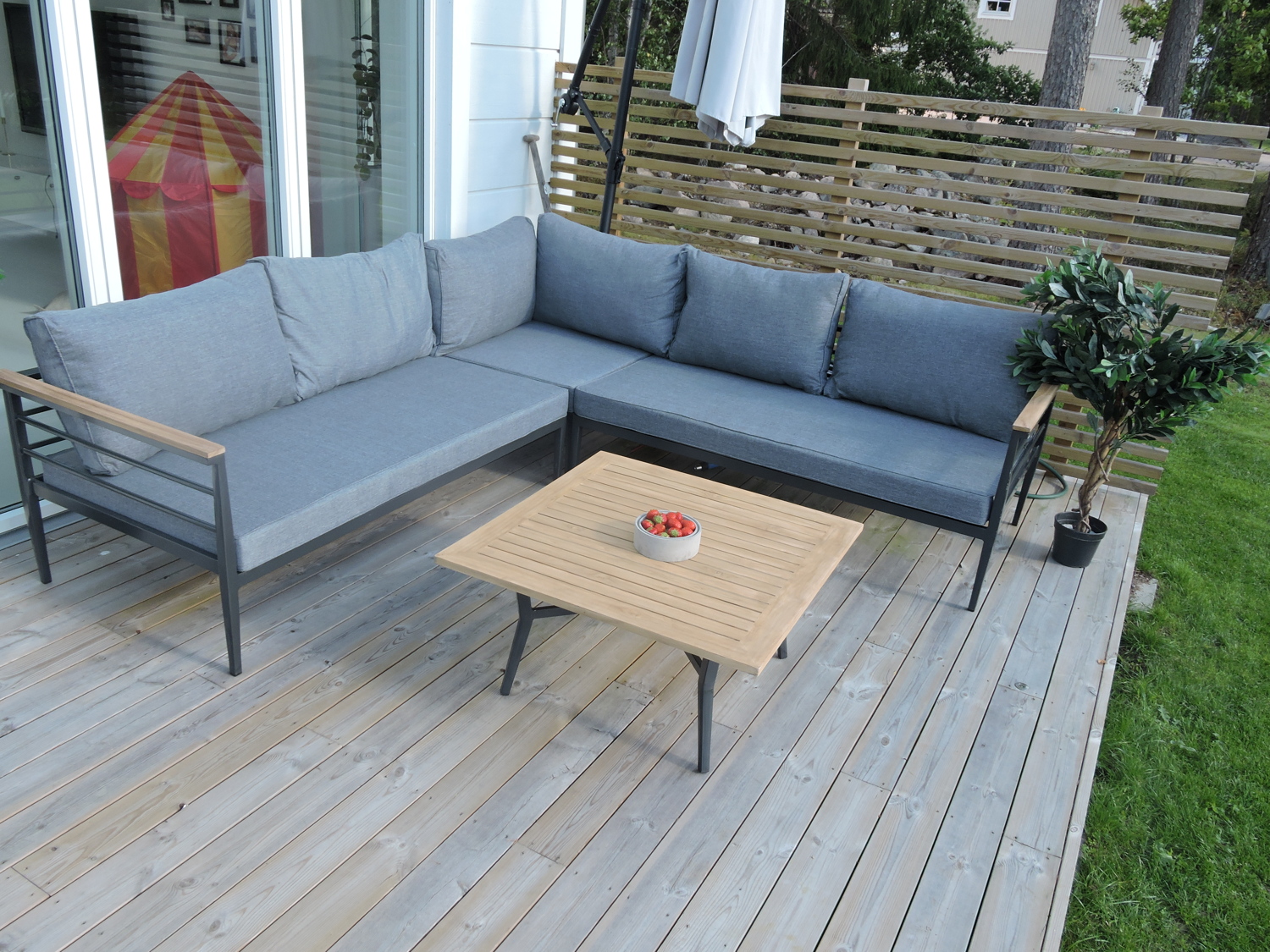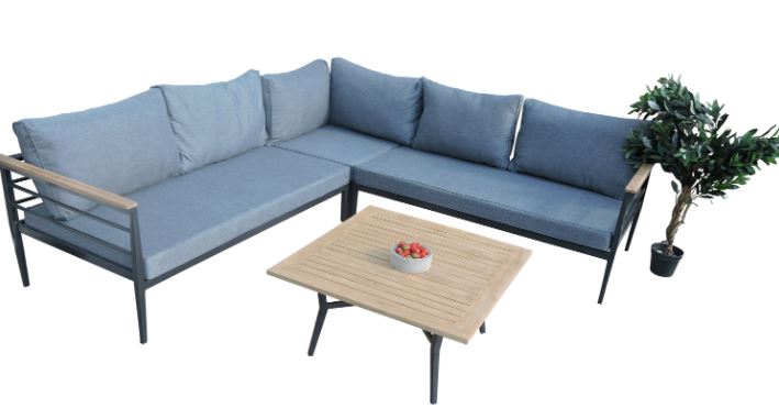 • Monipuoliset mitat: Tilava 230/230 cm sohva ja 80×80 cm pöytä sopivat täydellisesti erilaisiin terassitiloihin.