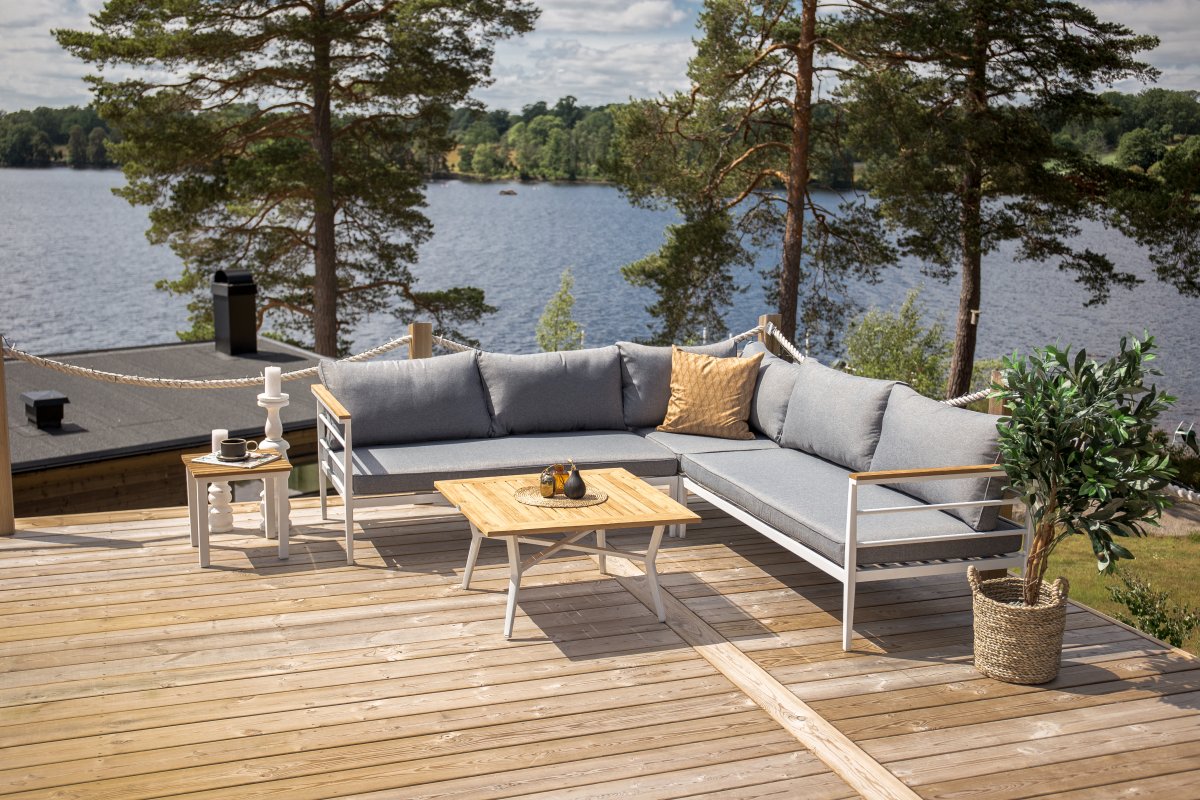 • Moderni muotoilu: Mexico sohvaryhmä tuo terassillesi tyylikkään ja yhtenäisen ilmeen valkoisella rungolla ja tiikkipuisilla yksityiskohdilla.
