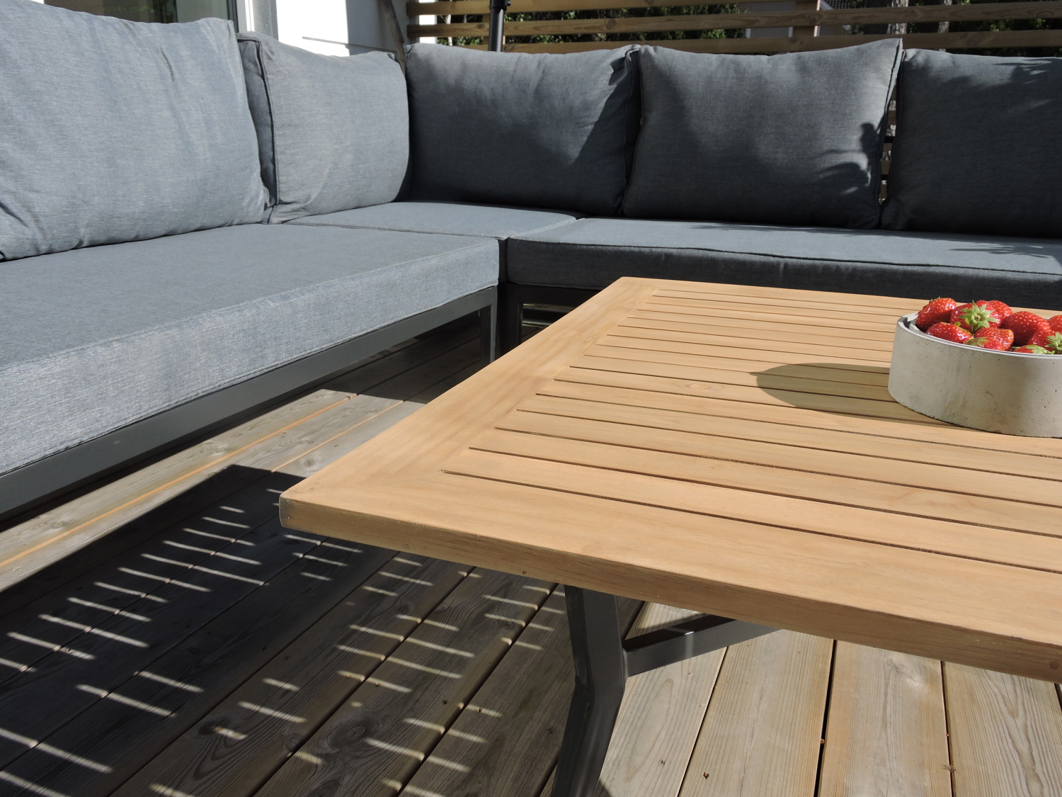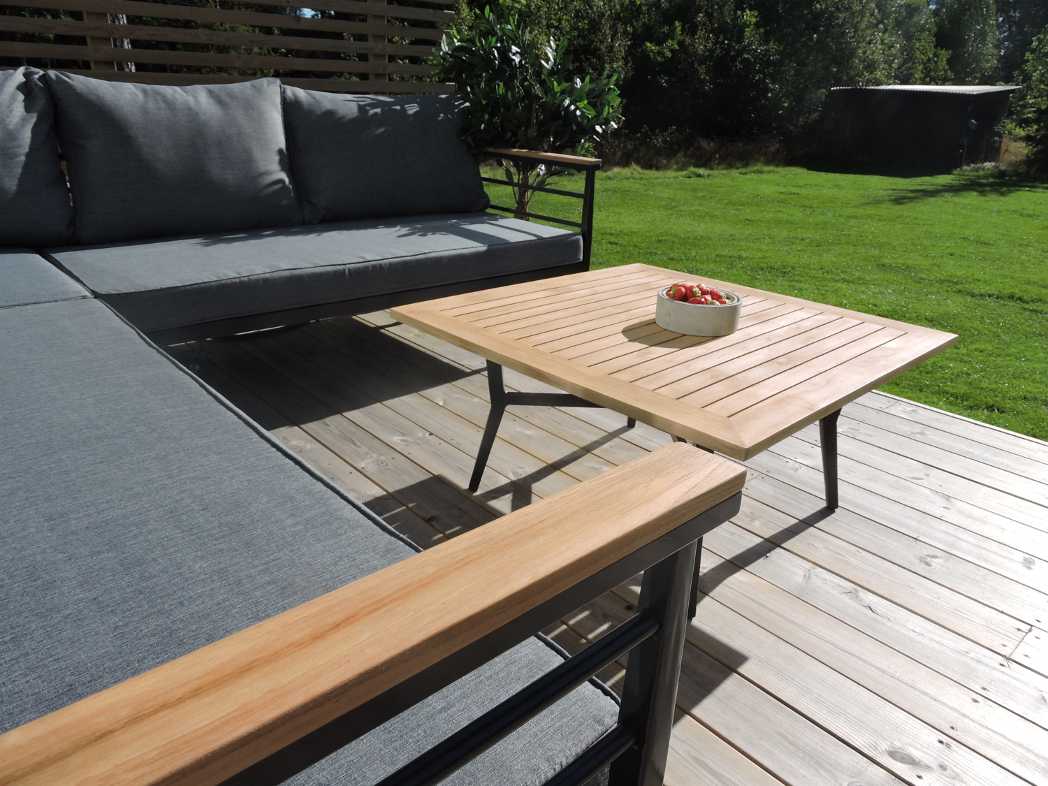 • Kestävä materiaali: Jauhemaalattu metallirunko ja sertifioitu tiikkipuu takaavat pitkäikäisyyden ja vähäisen huollon tarpeen.