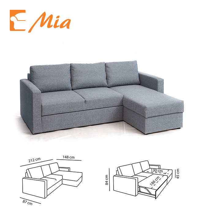 Mia vuodesohva vuodevaatelaatikolla omaa kauniin muotoilun, joka sopii moniin eri sisustuksiin. Mia sohva tarjoaa sekä mukavuutta että käytännöllisyyttä. Kätevä mekanismi mahdollistaa sohvan muuntamisen vuoteeksi vetämällä etuosaa. Runko on laadukasta massiivipuuta, kalustelevyä sekä vaneria, ja istuimissa on laadukas zig-zag jousitus. Sohvan divaaniosan kätisyys on valittavissa ja sohvan takaosa on viimeistelty, mikä mahdollistaa sohvan sijoittamisen myös keskelle huonetta. Vuodekoko avattuna 130×186 cm. Verhoilu vetoketjulla irroitettavissa. Viimeistele kokonaisuus tilaamalla sijauspatja tai tyylikkäät koristetyynyt.