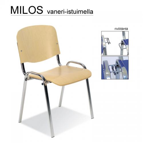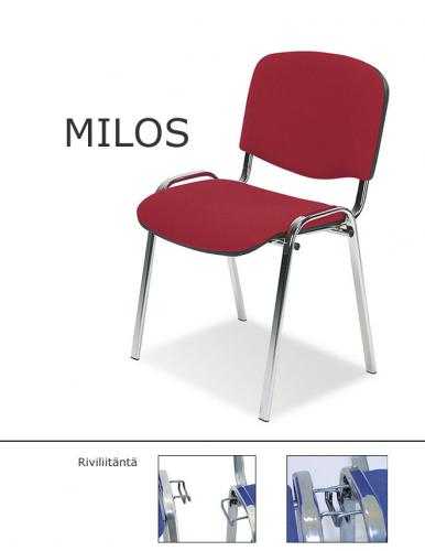 Tuoli on saatavana useissa väreissä sekä puu- tai verhoillulla istuimella, ja lisävarusteina voidaan valita käsinojat tai luentotaso. Milos-tuoli on myös saatavilla penkkiryhmänä riviliitännällä tai kuljetuskärryn kanssa, mikä tekee siitä erinomaisen ratkaisun julkisiin tiloihin.