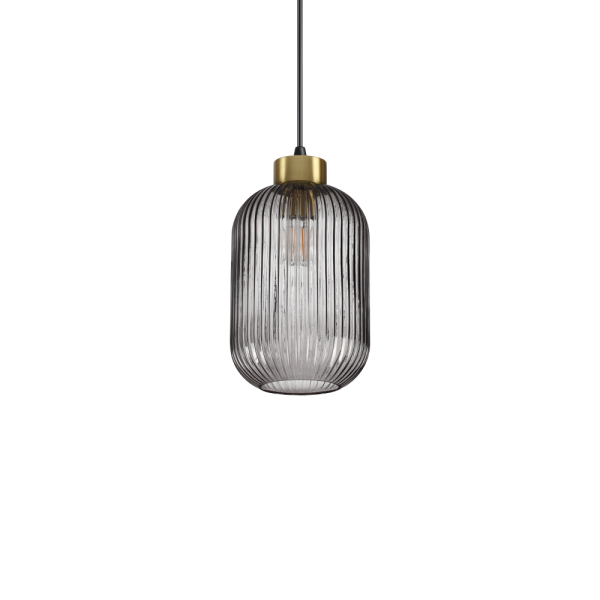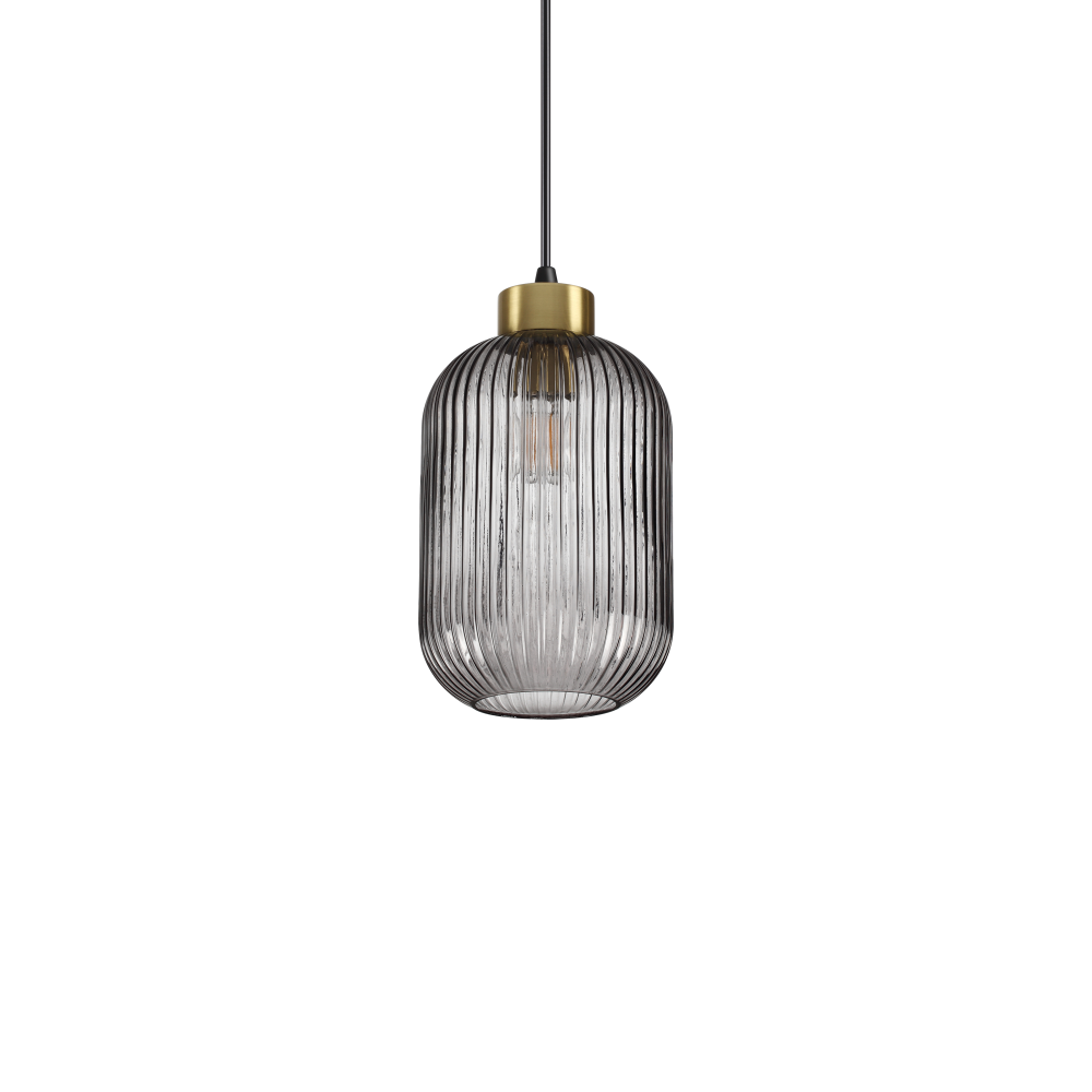 - Tyylikäs Mint SP1 riippuvalasin jossa satiini messinki metallinen runko ja matta musta kattoruusu. Valaisimen kupu on puhallettua lasia korotetuilla viivoilla. Design Italia.