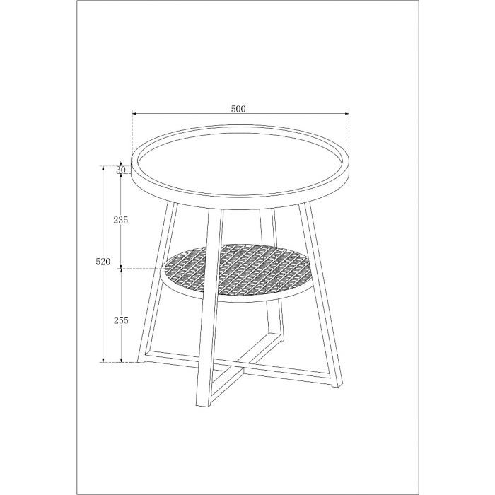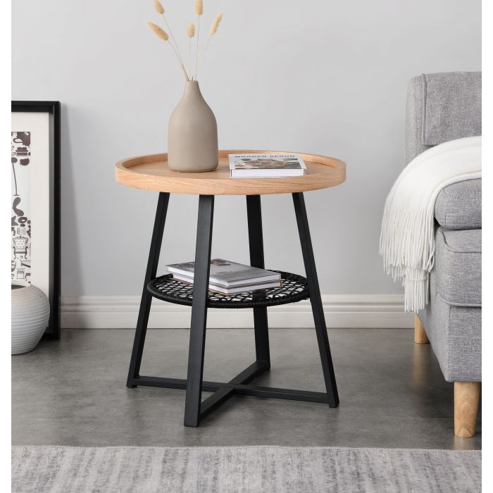 Pöydän kauniisti punottu muovirottinkinen alataso tuo kokonaisuuteen kiinnostavaa tekstuuria ja tarjoaa kätevän säilytyspaikan esimerkiksi kirjoille, lehdille tai sisustusesineille. Kannen 25 kg ja alahyllyn 10 kg kantavuus tekevät rakenteesta käytännöllisen ja arjen tarpeisiin hyvin toimivan.
