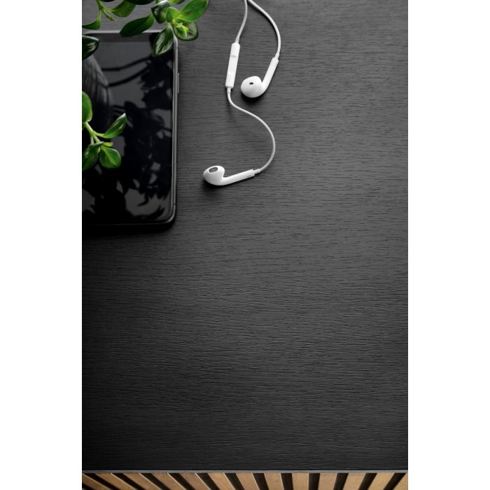 Kapea Mooa-senkki hurmaa modernilla mustalla ilmeellään ja lämpimän sävyisellä LED-valaistuksella, joka tuo kalusteeseen ylellisen ja viimeistellyn tunnelman. Laadukas 16 mm laminoitu runko, ABS-reunanauhat sekä 18 mm uritettu MDF-ovet ja 4 mm karkaistu savulasi alumiinikehyksellä luovat tyylikkään ja kestävän kokonaisuuden.