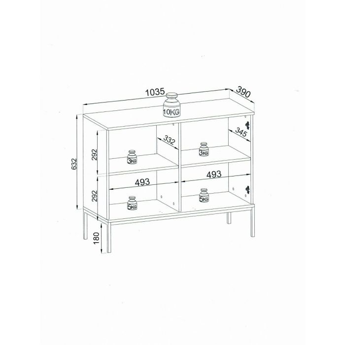 Senkissä on kaksi kaappia välihyllyineen, mikä tarjoaa käytännöllistä säilytystilaa pienempiinkin tiloihin. Push-to-open-mekanismi ja Häfelen saranat tekevät käytöstä sulavaa, ja 104 cm leveä, 39 cm syvä ja 83 cm korkea rakenne sopii täydellisesti esimerkiksi olohuoneeseen, eteiseen tai makuuhuoneeseen.