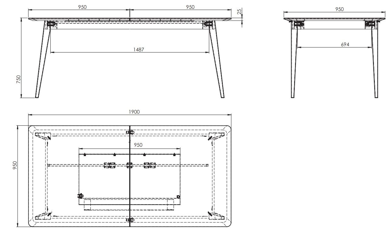 Pöytä sisältää yhden sisäänrakennetun jatkopalan, joka on sijoitettu pöydän sisälle. Kun tarvitset lisää tilaa, pöytä vedetään auki keskeltä ja jatkopala nostetaan vaivattomasti paikoilleen. Avattuna pöydän koko kasvaa 285 × 95 cm:iin, tarjoten runsaasti tilaa perheelle ja vieraille.