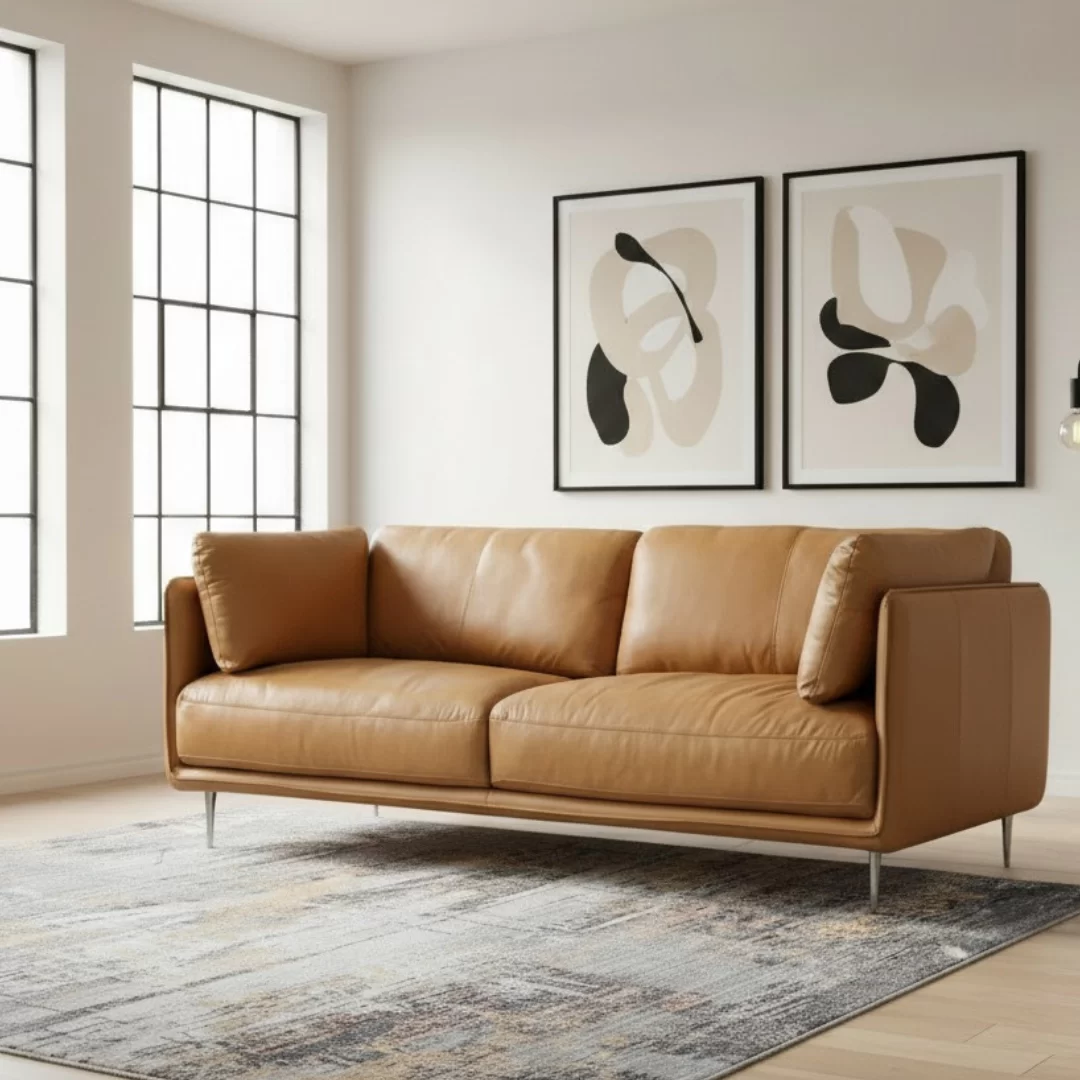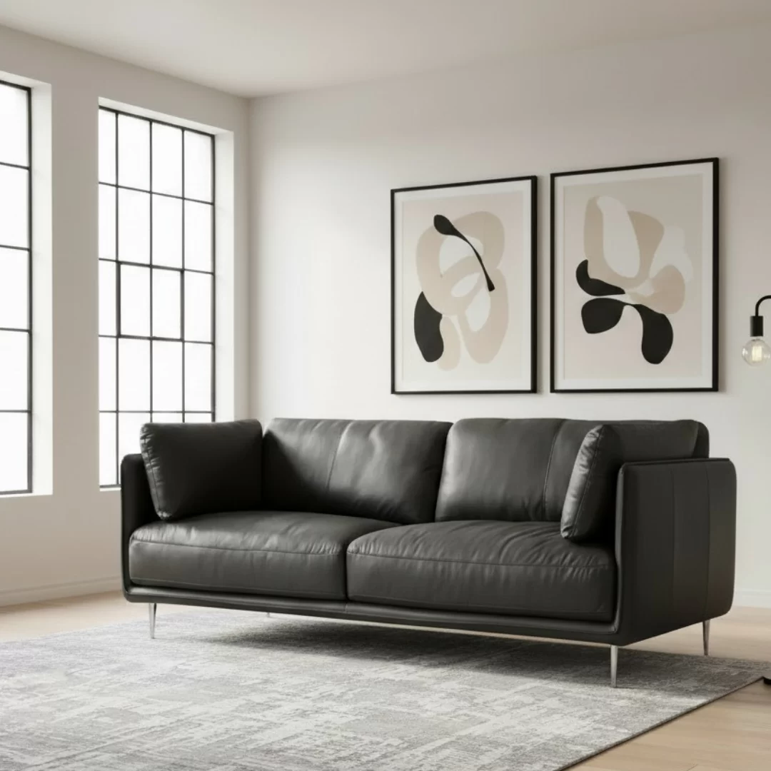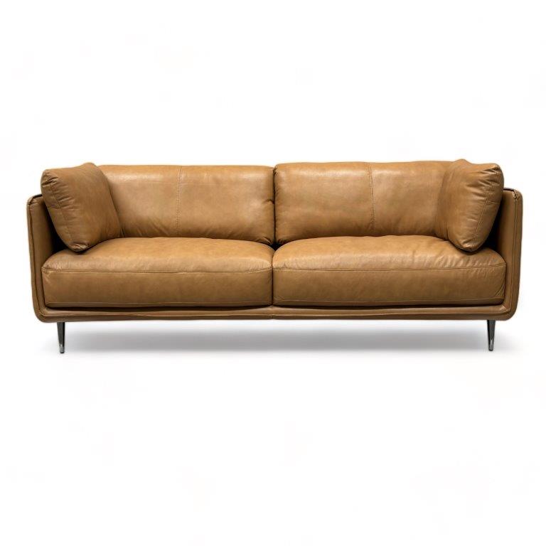 Moon-sohvan kulutusosat on verhoiltu paksulla, läpivärjätyllä aidolla nahalla, joka tuo tuotteeseen ylellisyyttä ja kestävyyttä. Keinonahkaiset sivut ja takaosat täydentävät kokonaisuuden kevyesti ja huolitellusti. Tämä sohva on suunniteltu sinulle, joka arvostat helppohoitoisia materiaaleja ja kestävää kauneutta.