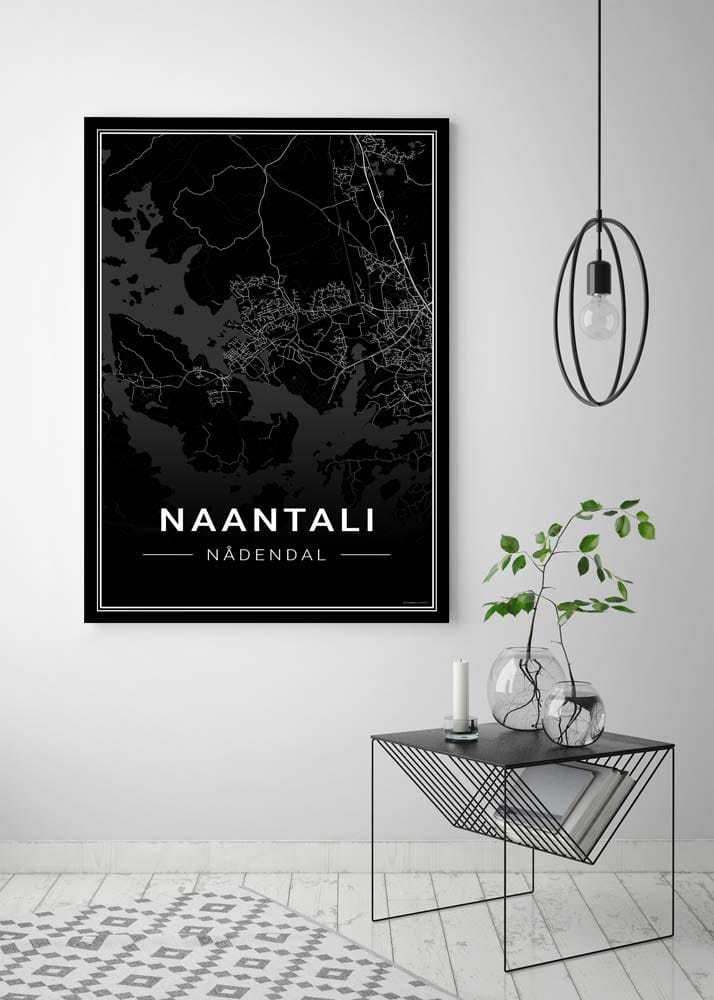 • Naantali kaupunkijuliste, Naantali on kansainvälinen ja historiallinen merenrantakaupunki. Sen keskustan vanha osa kävelykatuineen saa ajatukset ja siirtymään menneisiin aikoihin – Naantali onkin yksi Suomen vanhimmista kaupungeista. Sen kaupunkikuvaan kuuluvat olennaisesti kirkko, kylpylä sekä presidentin kesäasunto Kultaranta. Näiden lisäksi Naantalissa on modernia rakennuskulttuuria sekä runsaasti puisto- ja virkistysalueita. Tämä mustavalkoinen juliste kuvaa kaupunkia, joka herää henkiin kesäisin ja saa sinut muistelemaan merta ja upeaa vanhaa kaupunkia.