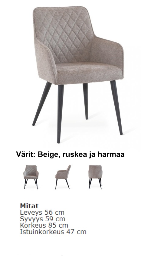 | Leveys | Syvyys | Korkeus | Halkaisija | kannen paksuus | Ruokapöydän koko avattuna 1 jatkolla | Ruokapöydän koko avattuna 2 jatkolla | Nojatuolin mitat | 2 ist sohvan mitat | 3 ist sohvan mitat | Istuinkorkeus | Työtuolin istuinkorkeus | Istuinleveys | Istuinsyvyys | Jalkojen malli | Jalkojen korkeus | Sokkelin korkeus | Selkänojan Leveys | Selkänojan korkeus | Niskatuen korkeus | Käsinojan korkeus lattaiasta | Käsinojan korkeus lattiasta | Käsinojan leveys | Käsinoja mallit | Istuintyyny | Selkätyyny | Muut pehmusteet | Divaanisohvan Jalkapäädyn korkeus | Divaanisohvan pääpäädyn korkeus | Jalkapäädyn korkeus | Pääpäädyn korkeus | Vuodesohvan syvyys avattuna | Vuodekoko | Istuinkorkeus patjan kanssa | Reunan korkeus | Sivulaidan korkeus | Patjapesän korkeus | Patjakoko | Päätyjen koot | Patjan korkeus | Patjan kovuus | Patjan koko jatkettuva | Vapaa tila sängyn alla | Sänkyjen materiaali | Patjojen materiaali | Sijauspatjan materiaali | Kangasverhoilu | Kaapin sisämitat | Laatikon sisämitat | Materiaali | Materiaalit | Mitta | Muut mitat | Muuta | lisätietoja | Väri | Jalkojen väri | Nahkavärit | Puuvärit | Vetimien väri | Vapaa tila tuotteen alla | Tekniset tiedot | Painoraja | Takuu | Saatavuus | Toimitus | Paino | Timantti värit | Jalat tai sokkeli | Kannen koko | Elementit | Ovien malli | Timantti osien materiaali | Hyllyjen materiaali | Vetimet | Valmistusmaa | Taljan mitat | Mattojen Materiaali | Tyynyjen ja torkkujen materiaali | mattojen mitat | Nukan pituus | Mattojen värit | Tyynyjen ja torkkujen värit | Rullamaton leveydet | Varjostimen korkeus: | Varjostimen leveys | Varjostimen syvyys | Valaisimen Materiaali | Valaisimen tiedot | Valaisimen värit | Varjostimen värit | Huomioitavaa | Työtuolien ominaisuudet | Työtuolien verhoilu |
