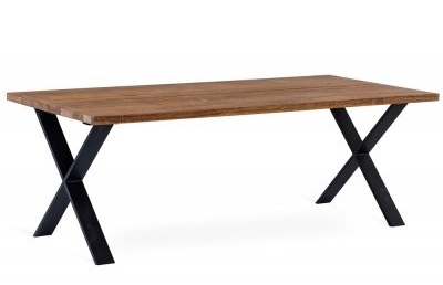Ruokapöytä on valmistettu helppohoitoisesta öljytystä villitammesta, jonka pinnassa näkyvät puun luonnolliset jäljet, kuten oksakohdat ja eläväinen syykuvio. Vuodenaikojen vaihtelut voivat aiheuttaa pieniä pinnan halkeamia, jotka ovat ominaisia tälle tuotteelle ja osa sen autenttista ilmettä. Mustat X-malliset jalat tuovat kokonaisuuteen modernia, teollishenkistä kontrastia.