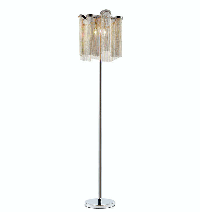 Tyylikäs ja moderni Niagara lattiavalaisin on todellinen katseenvangitsija, jossa varjostimena toimivat kauniit hopeansävyiset ketjut. Ilmava ja elegantti muotoilu tuo tilaan ylellisyyttä ja liikettä, tehden valaisimesta näyttävän sisustuselementin olohuoneeseen, aulaan tai edustavaan tilaan.