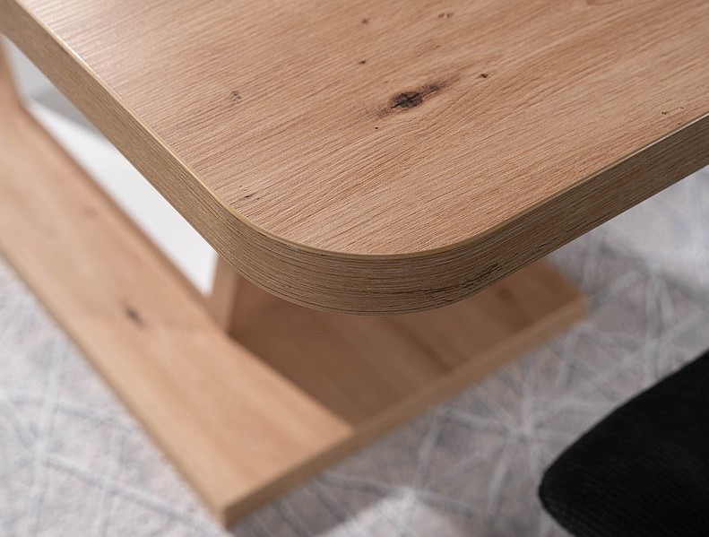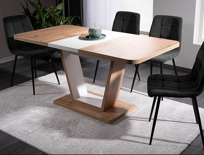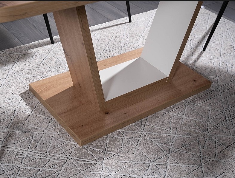 Nigel jatkettava ruokapöytä tuo ruokailutilaan modernia tyylikkyyttä yhdistämällä valkoiset tai tummanruskeat yksityiskohdat luonnolliseen tammisävyyn. Selkeälinjainen muotoilu sopii saumattomasti niin skandinaaviseen kuin ylelliseenkin sisustukseen ja tekee pöydästä tilan harmonisen keskipisteen.