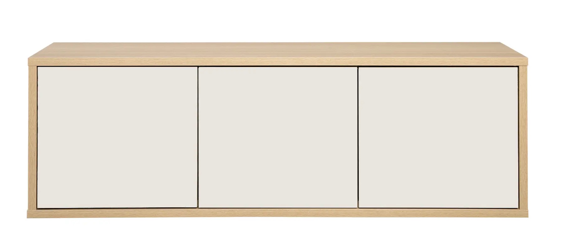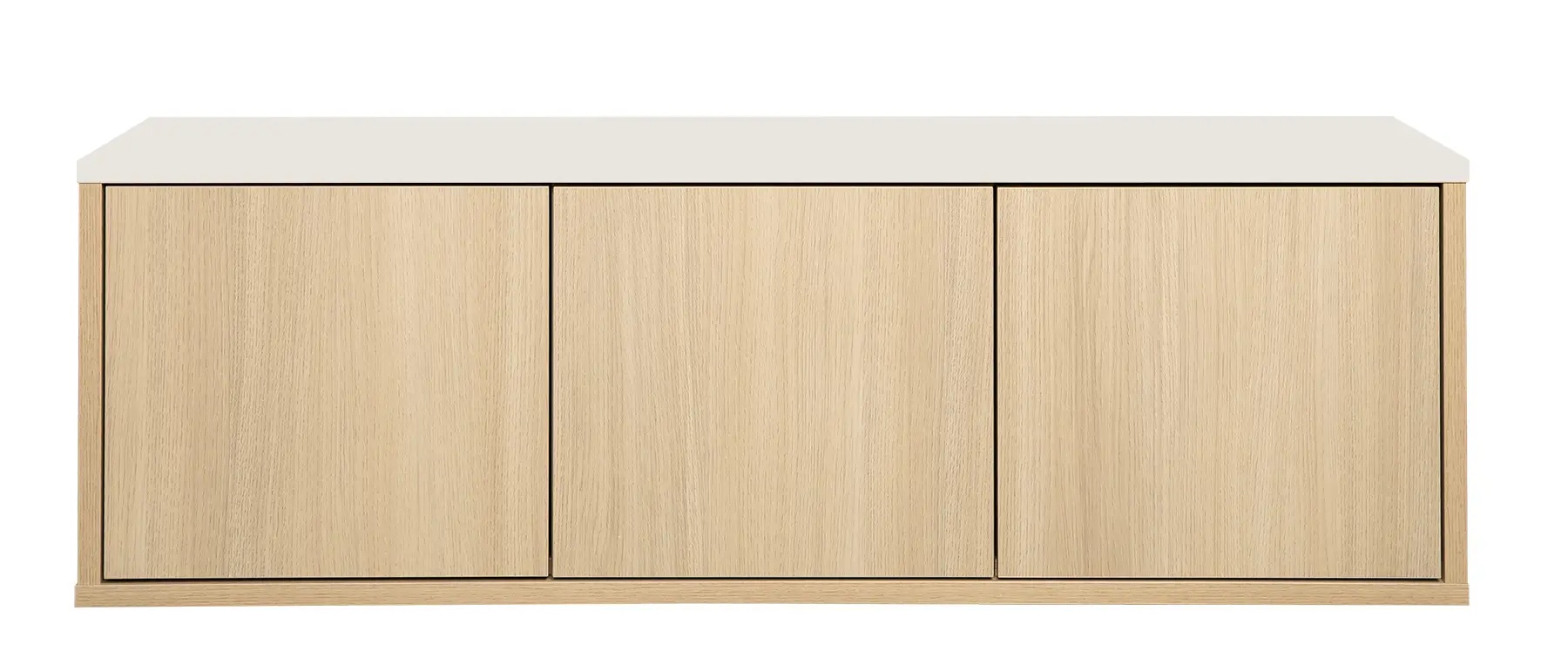 Kolme push-to-open ovea avautuvat kevyesti painamalla, ja niiden takana olevat säädettävät hyllyt tarjoavat runsaasti säilytystilaa pienestä koostaan huolimatta. Selkeälinjainen muotoilu ja huolellinen viimeistely tekevät tasosta katseenvangitsijan kodin eri tiloihin.