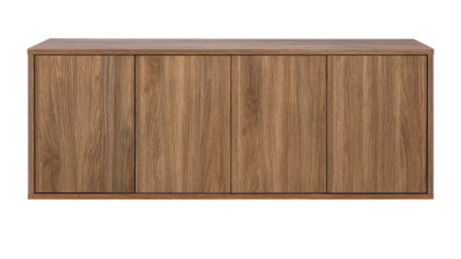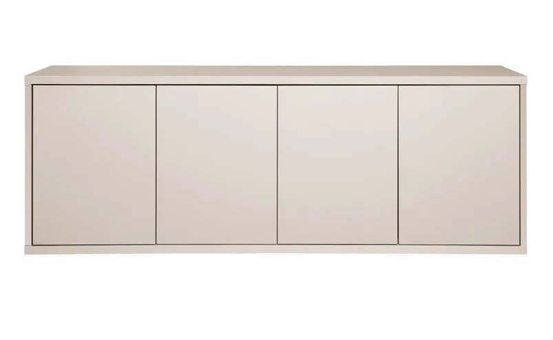 Neljä push-to-open ovea avautuvat kevyesti painamalla, ja niiden takana olevat säädettävät hyllyt tarjoavat runsaasti säilytystilaa pienestä koostaan huolimatta. Selkeälinjainen muotoilu ja huolellinen viimeistely tekevät tasosta katseenvangitsijan kodin eri tiloihin.