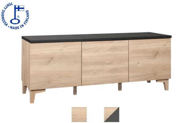 - Niklas tv-taso kolmella kaapilla. Kaapeissa push-open mekanismi. Tv-tason runko on hunaja tammen sävyistä kalustelevyä ja kannessa kaksi eri värivaihtoehtoa, jotka ovat hunaja tammi sekä musta. Niklas tuotteiden jalat ovat 13cm massiivipuuta. Upea Kotimainen Niklas tuotesarja sopii skandinaaviseen sisustukseen ja se tuo lämpöä sekä tyyliä kotisi sisutukseen. Korkeat jalat antavat kalusteille erittäin kevyen ja ilmavan vaikutelman. Toimitus kasattuna.